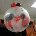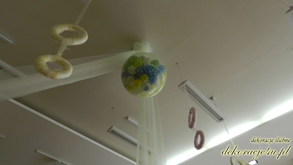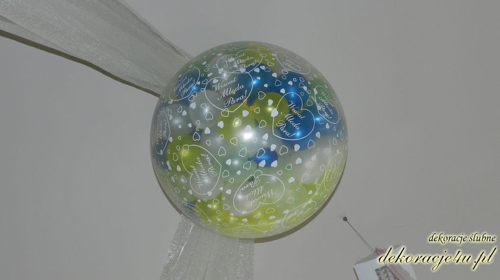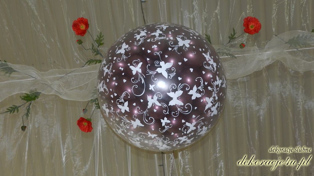 Wybuchowy balon to wspaniała atrakcja weselna ciesząca się duża popularnością. Podczas pierwszego tańca Pary Młodej, balon, który uzbrojony jest w detonator, pęka i wylatują z niego malutkie baloniki. Oprócz nich, do środka możemy wrzucić konfetti, płatki róż lub piórka. Ogromny balon, mierzący 1 metr średnicy jest w stanie pomieścić 100, 150 a nawet 200 malutkich baloników. A wszystko to, o dowolnym kształcie i kolorze. Balon strzelający można zrobić samemu, jednak po co się męczyć, jeśli można powierzyć to firmie dekoratorskiej?