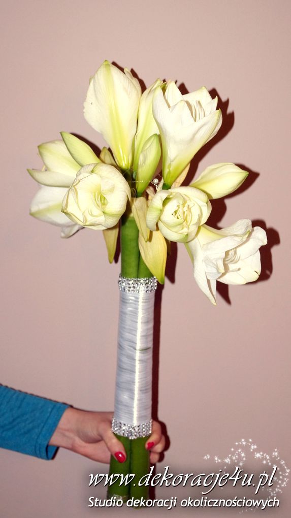 Panna Młoda, oprócz pięknej sukni ślubnej i zapasu dróżek, musi mieć element wyróżniający ją i dodający jej uroku. Takim elementem będzie bukiet ślubny, który powinien być poniekąd skromny, jednak wyglądający bogato i elegancko. Bukiety ślubne mogą być również nowoczesne, bądź inaczej - niestandardowe. Zawsze jest to wyzwanie, jeżeli przychodzi do zrobienia innowacyjnego bukietu. Nasza firma lubi wyzwania, także bez wahania prosimy o podesłanie swoich pomysłów, bądź o kontakt w sprawie niecodziennego bukietu ślubnego. Proponujemy dwa bukiety, z których jeden zostanie w Kościele, drugi zaś będzie towarzyszył Pani Młodej podczas drogi do sali weselnej.