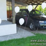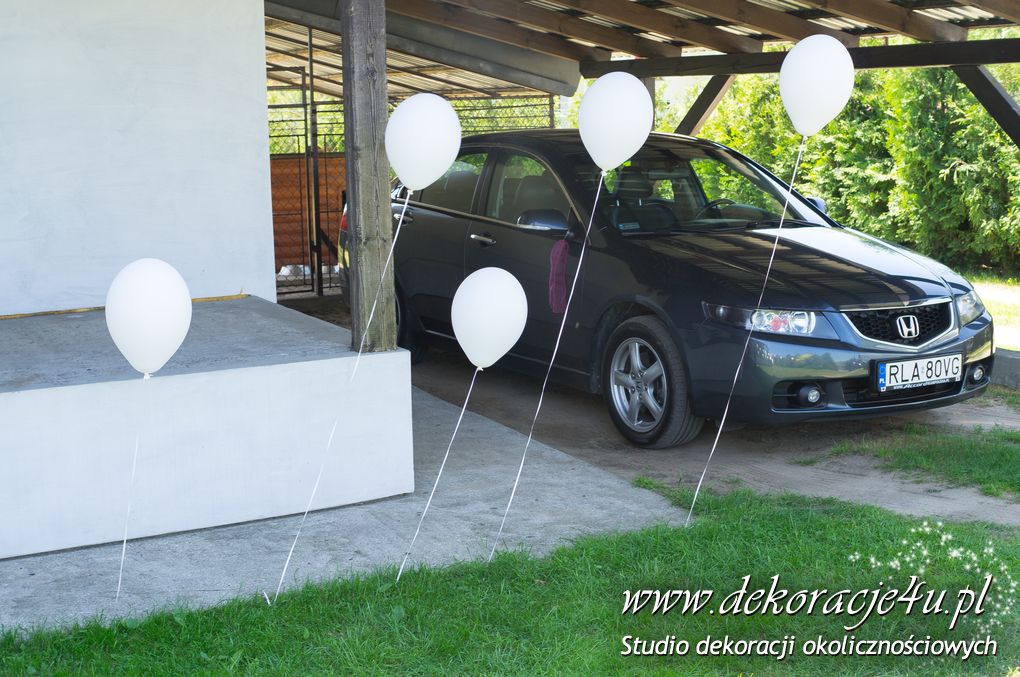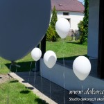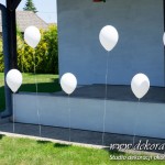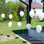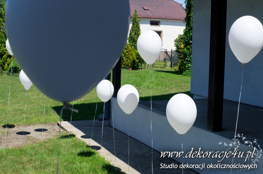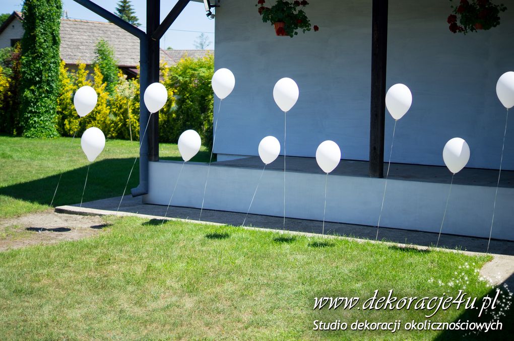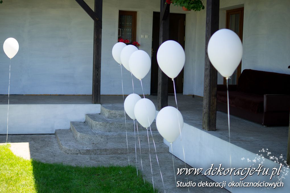 Przybranie domu Pani Młodej - Delikatnie tylko białe balony z helem poruszające się w rytm wiatru nadawały klimat temu miejscu.