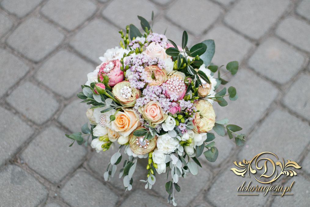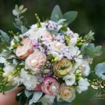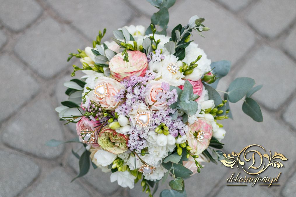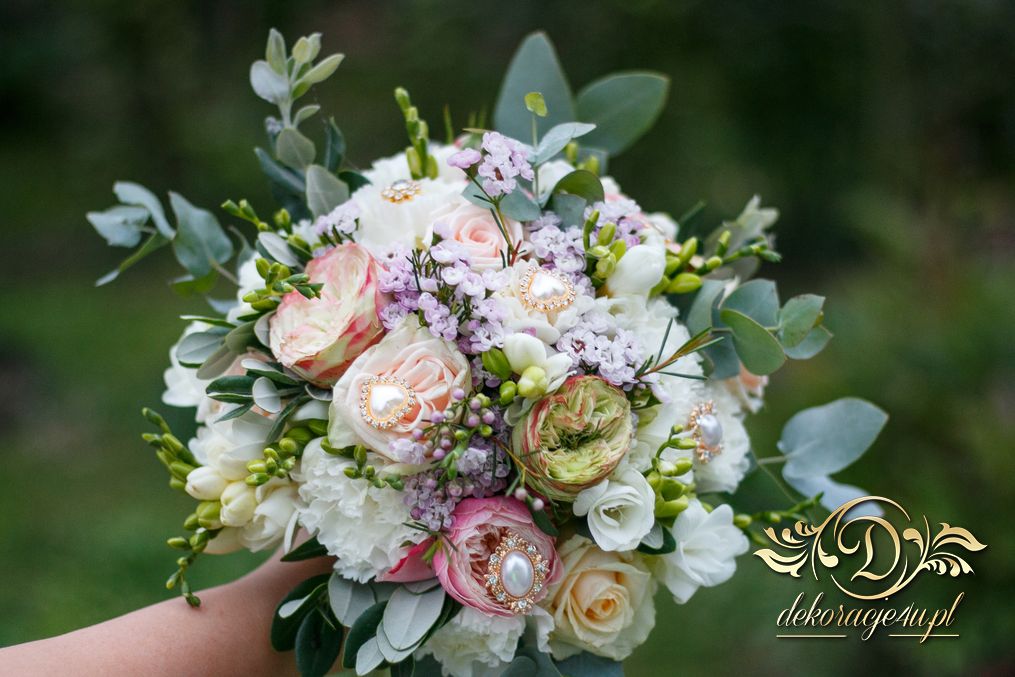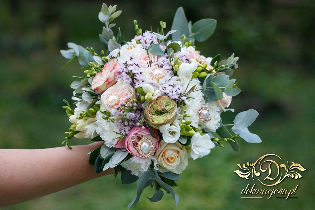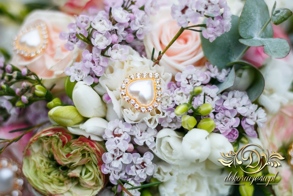 Piękny bukiet ślubny z dodatkiem broszek. Efekt cudowny. Kolejna Pani Młoda zadowolona a my szczęśliwi.
