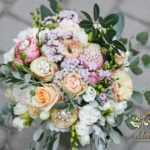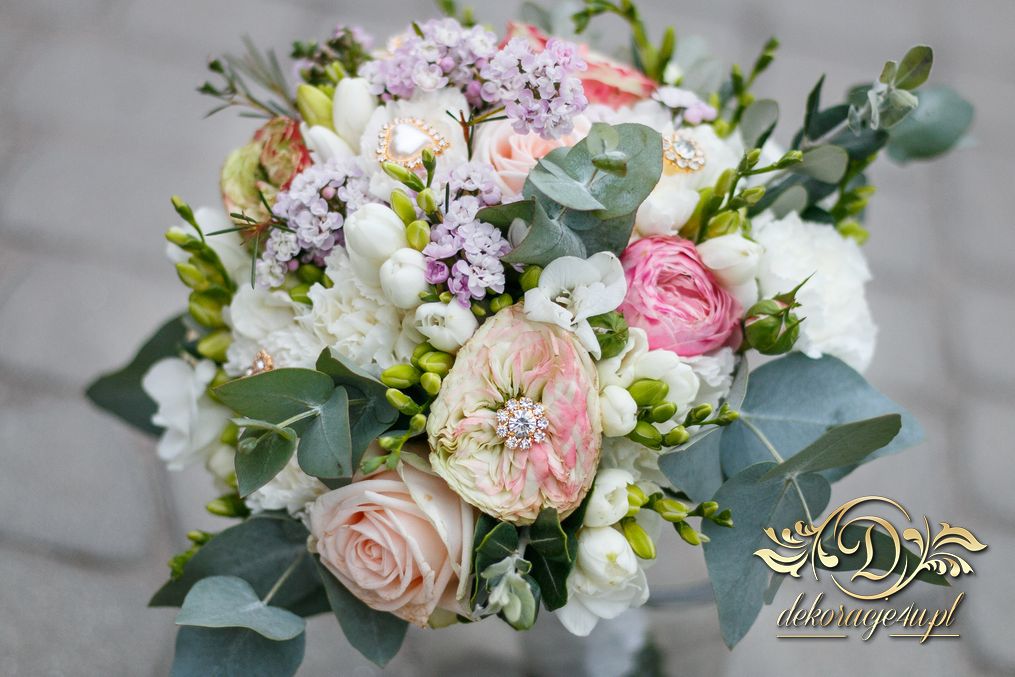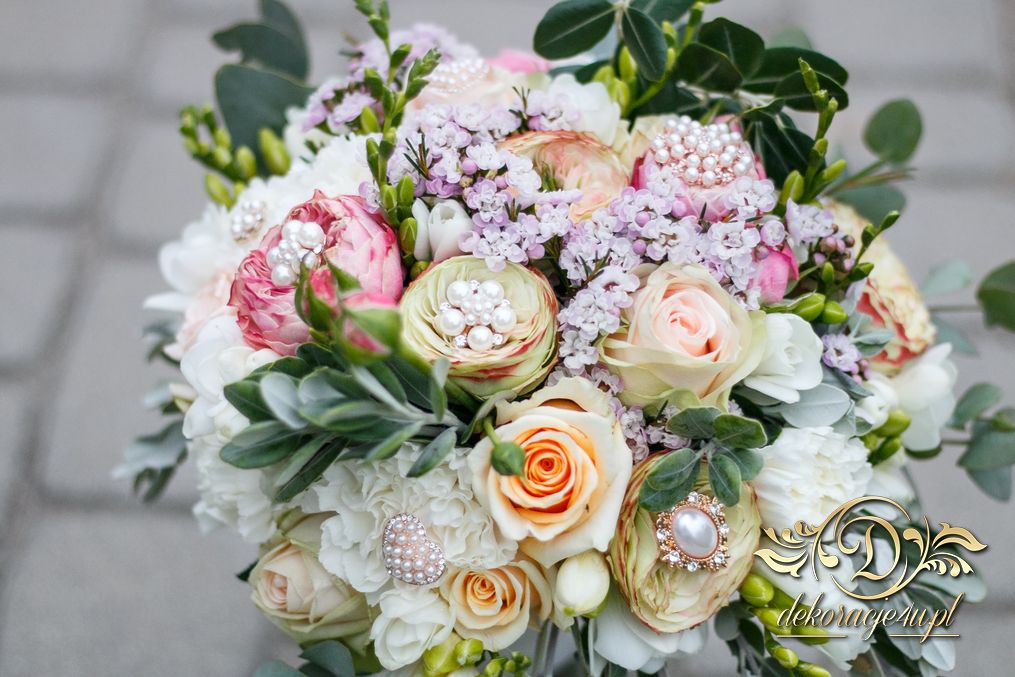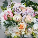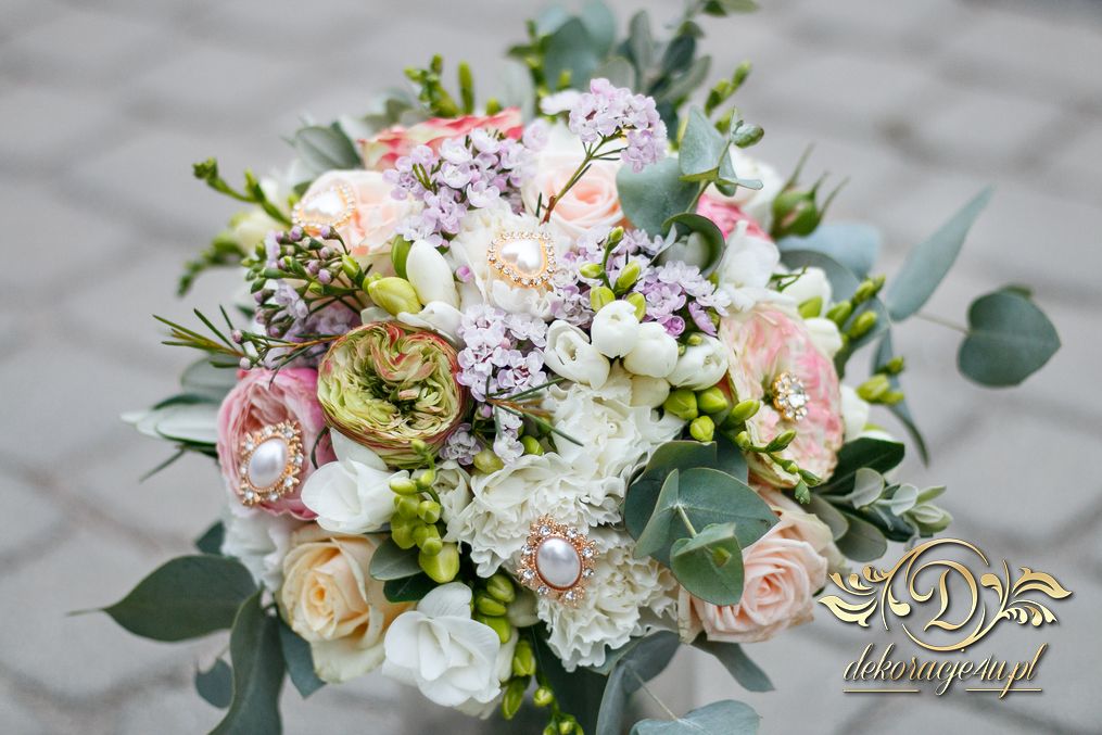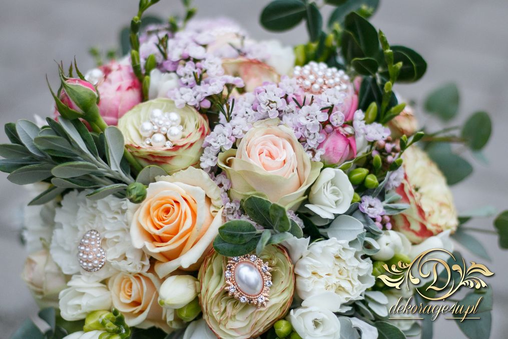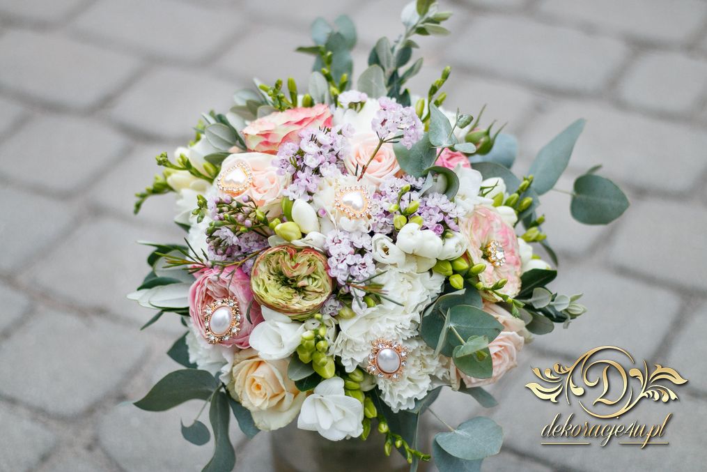 Piękny bukiet ślubny z dodatkiem broszek. Efekt cudowny. Kolejna Pani Młoda zadowolona a my szczęśliwi.