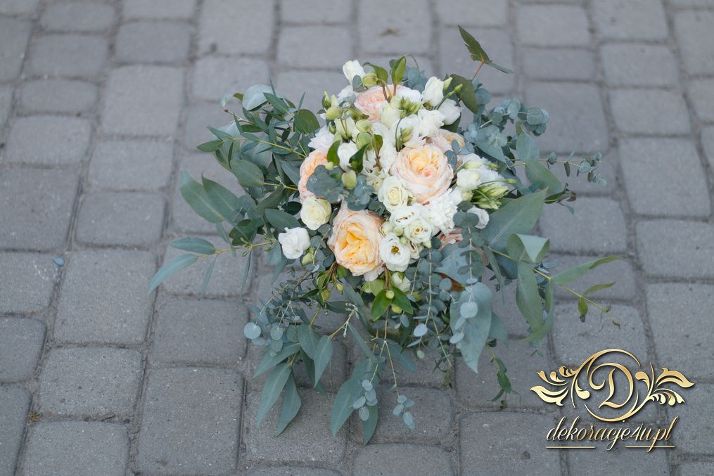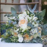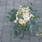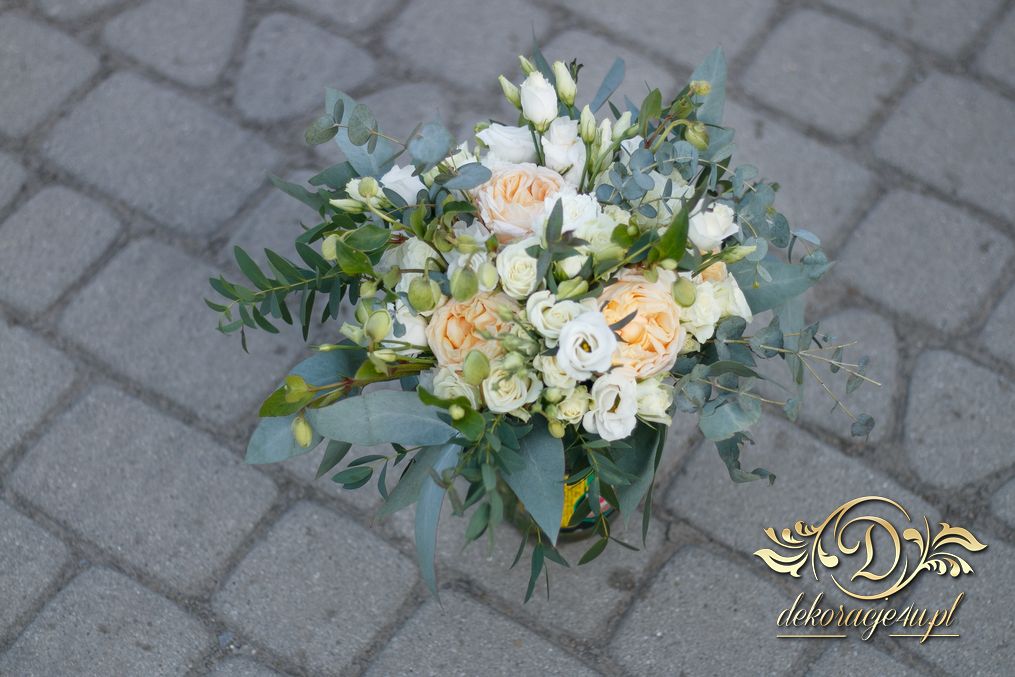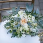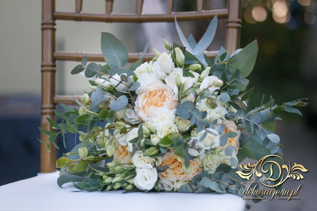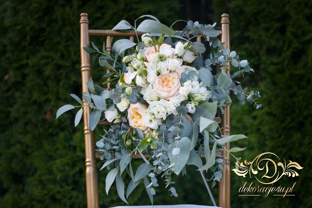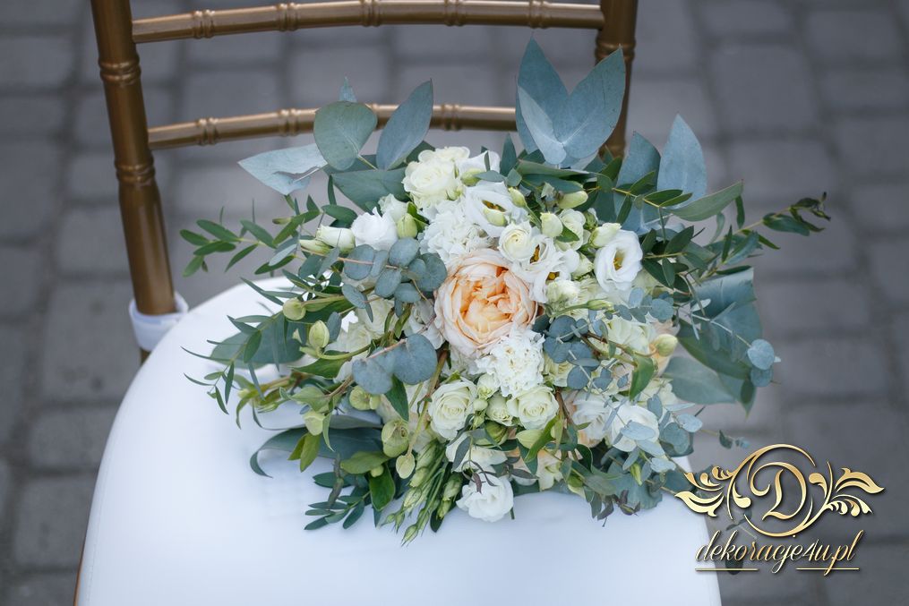 Piękny bukiet w tonacji zieleni. Tym razem dekoracją do bukietu posłużyło krzesło chaviera.
