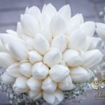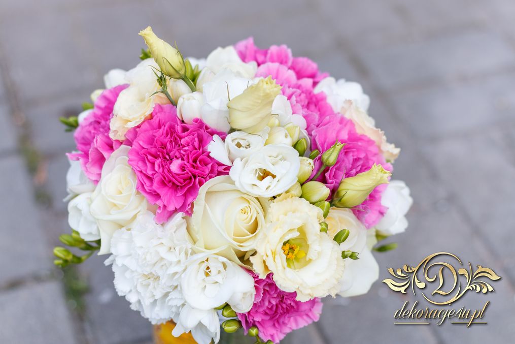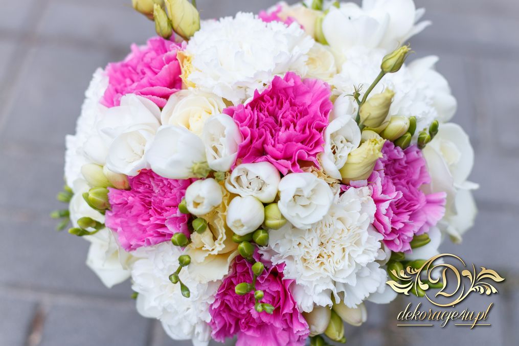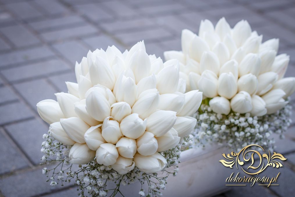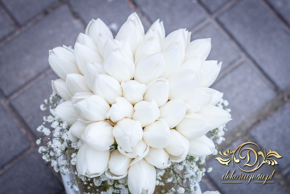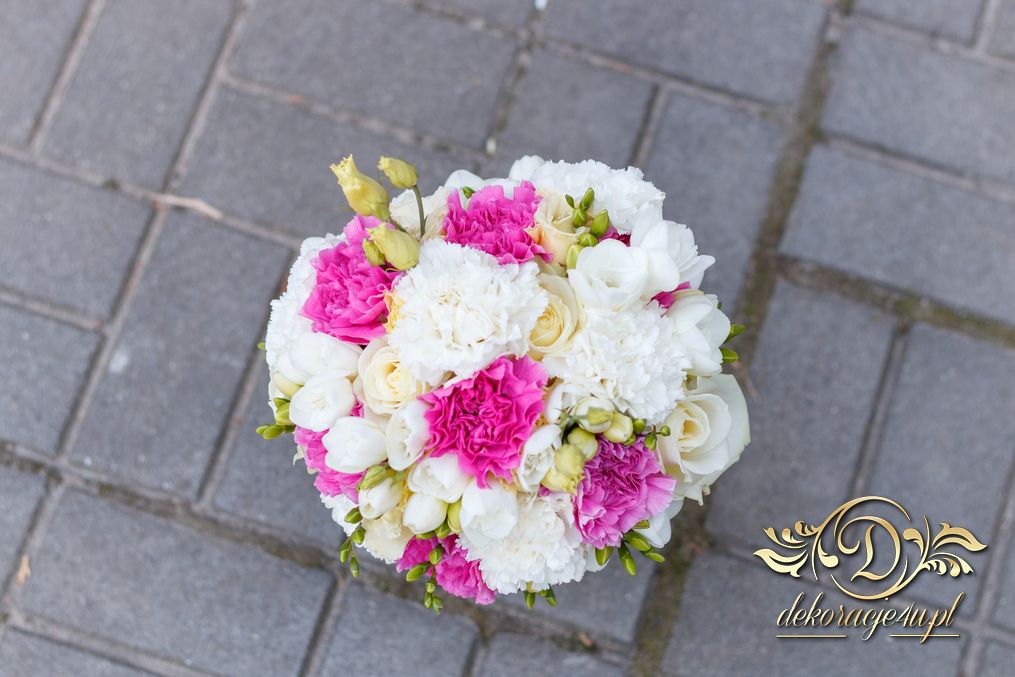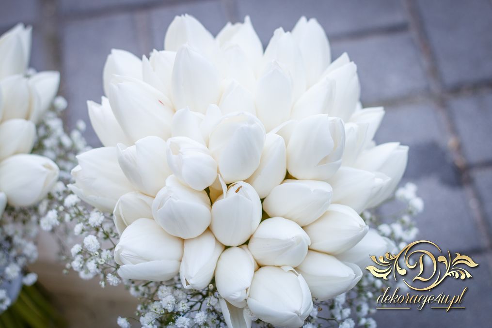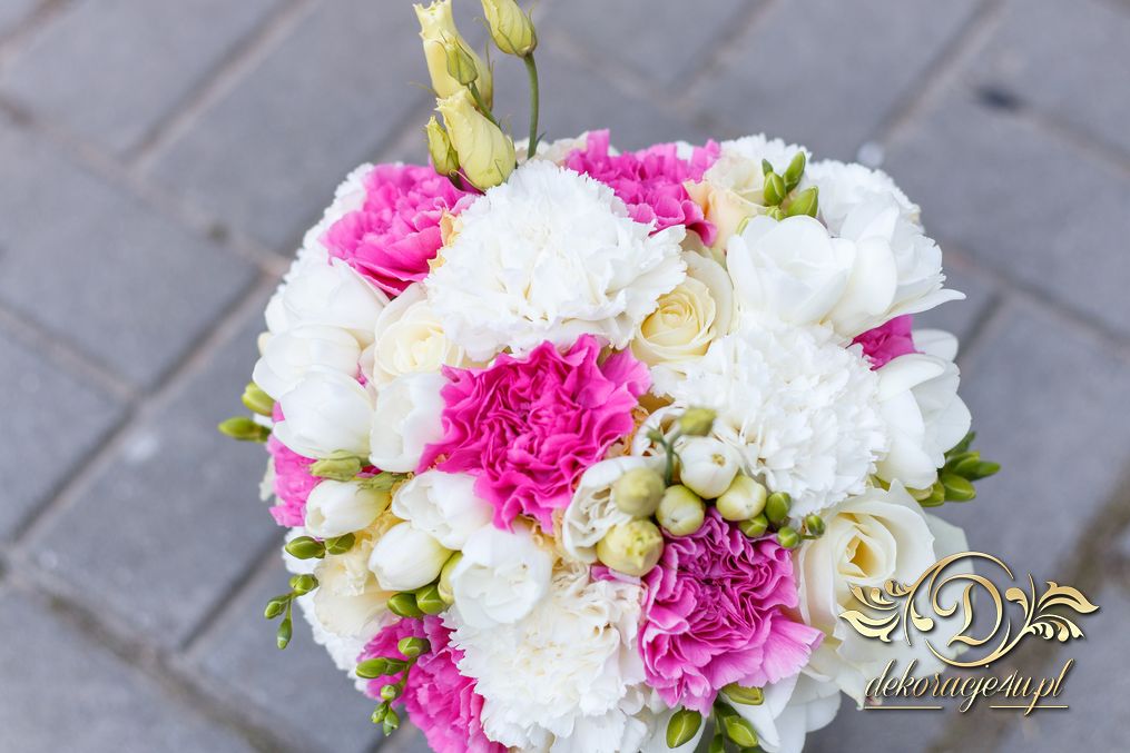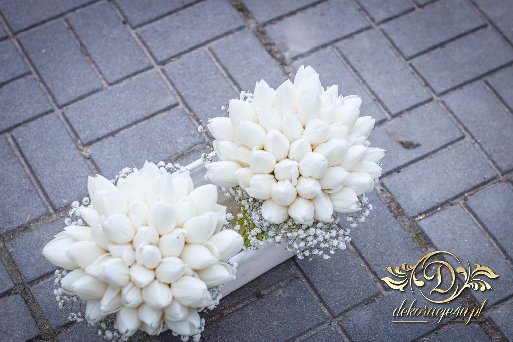 Piękne bukiety ślubne na dwa ślubu. Jeden różowo biały, który cieszy się cały czas bardzo dużym zainteresowaniem, a drugi z tulipanów - samych tulipanów. Dodatkowo butonierki. Całość wrażenie imponujące.