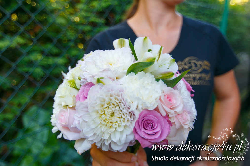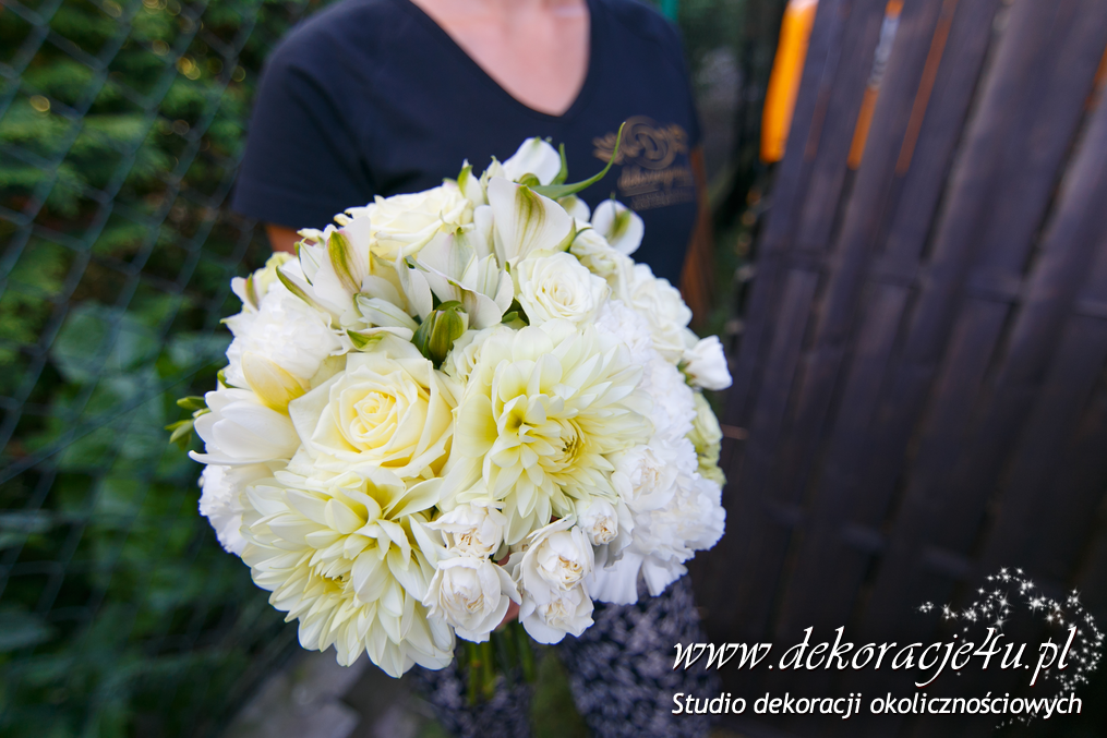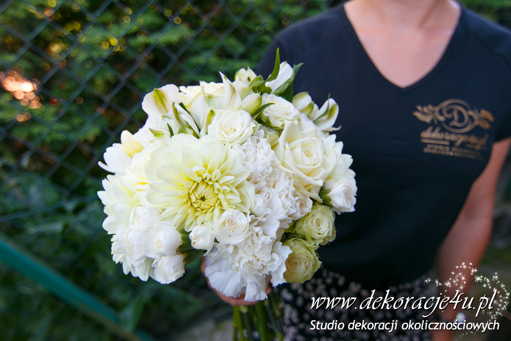Piękne bukiety ślubne na wyjątkową okazję - wesele idealne Pary Młodej. Kolory w tonacji białej z delikatnymi dodatkami koloru.