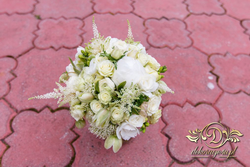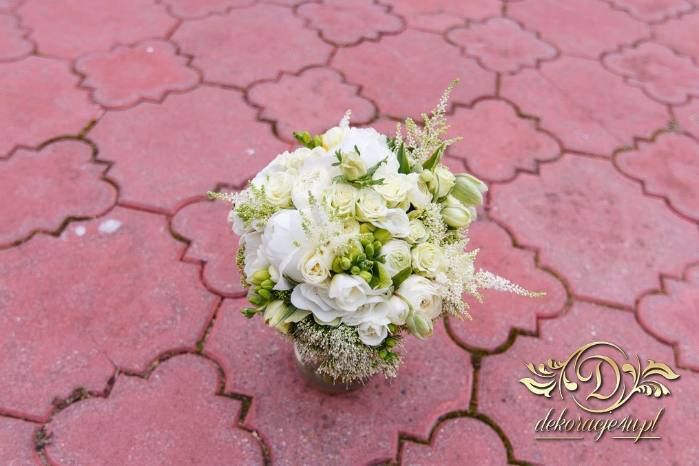 Na początek roku po zimowej przerwie wchodzimy z dekoracjami na stałe aż do października. Dzisiaj bukiet, który jest już przez Nas tak często wykonywany że czujemy się jak rodzice. Biel z zielenią zawsze dobrze pasują do każdej pary Młodej.