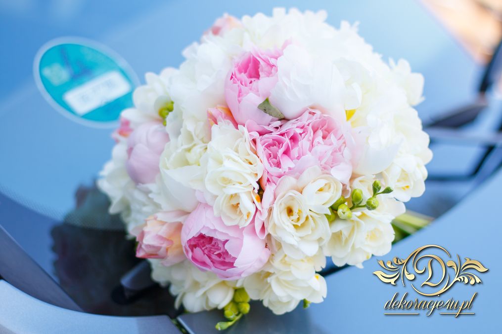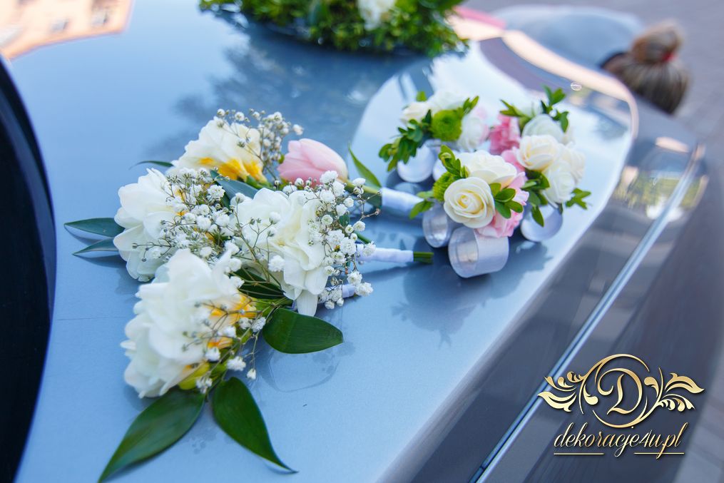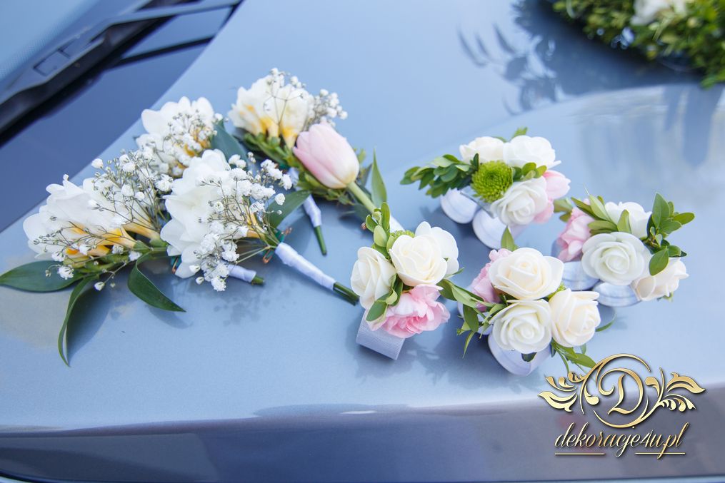 Piękne bukiety ślubne w cudownej kolorystyce - bardzo uniwersalne i pasujące do większości Panien Młodych. Dodatkowo butonierki i bransoletki na rękę.