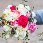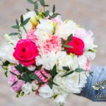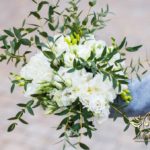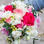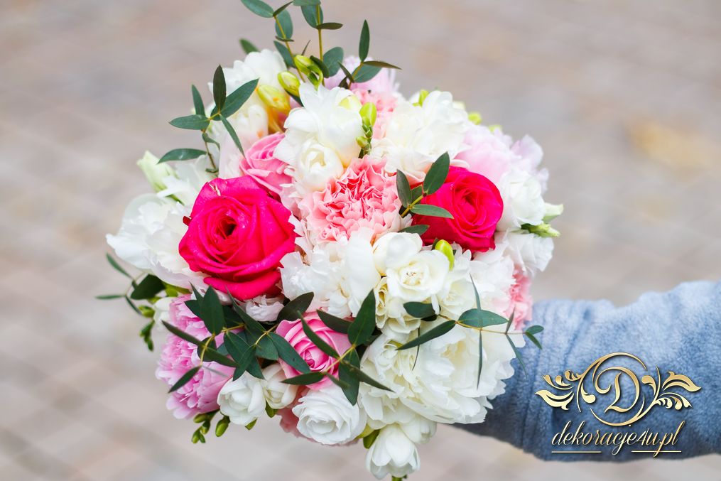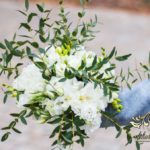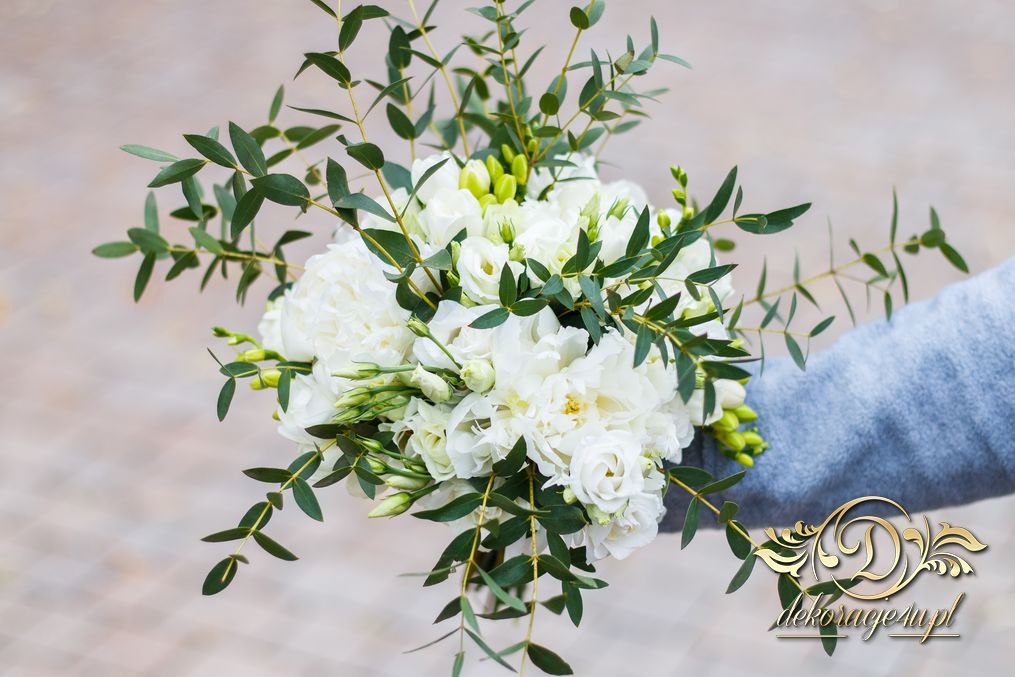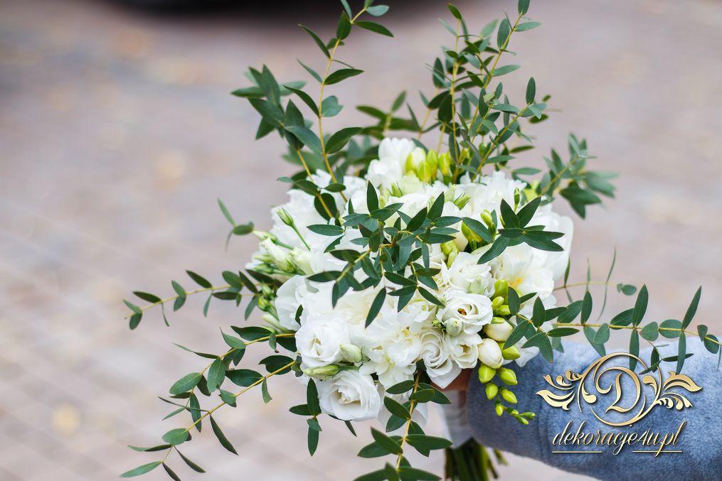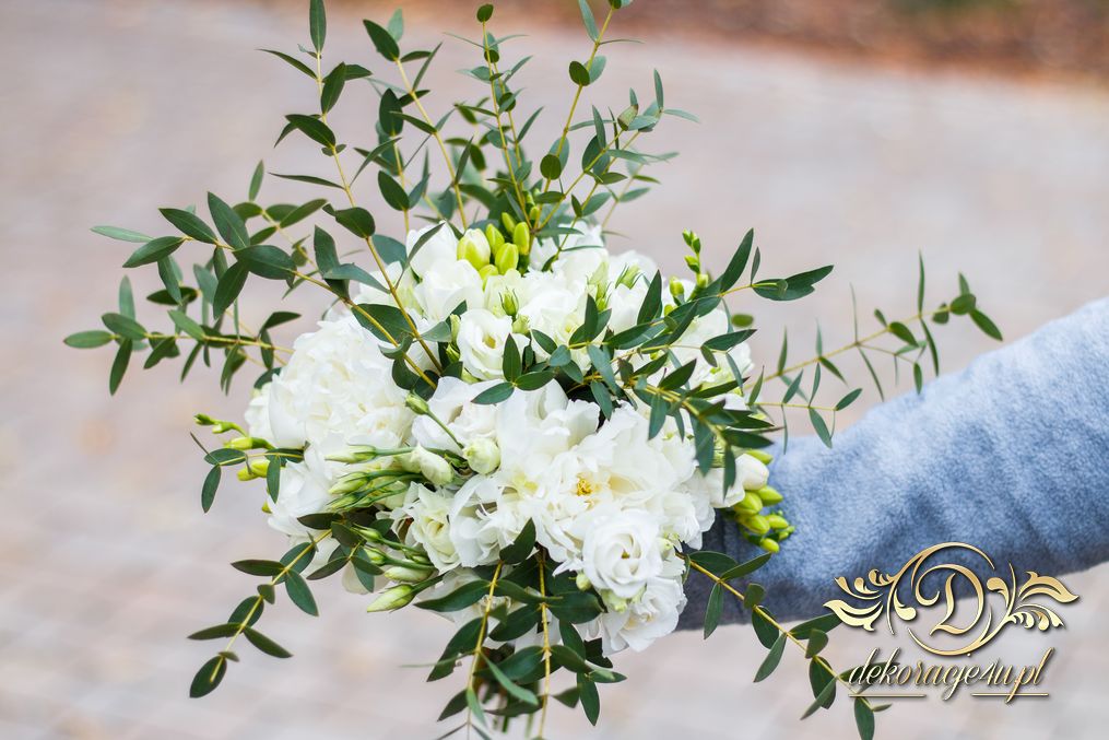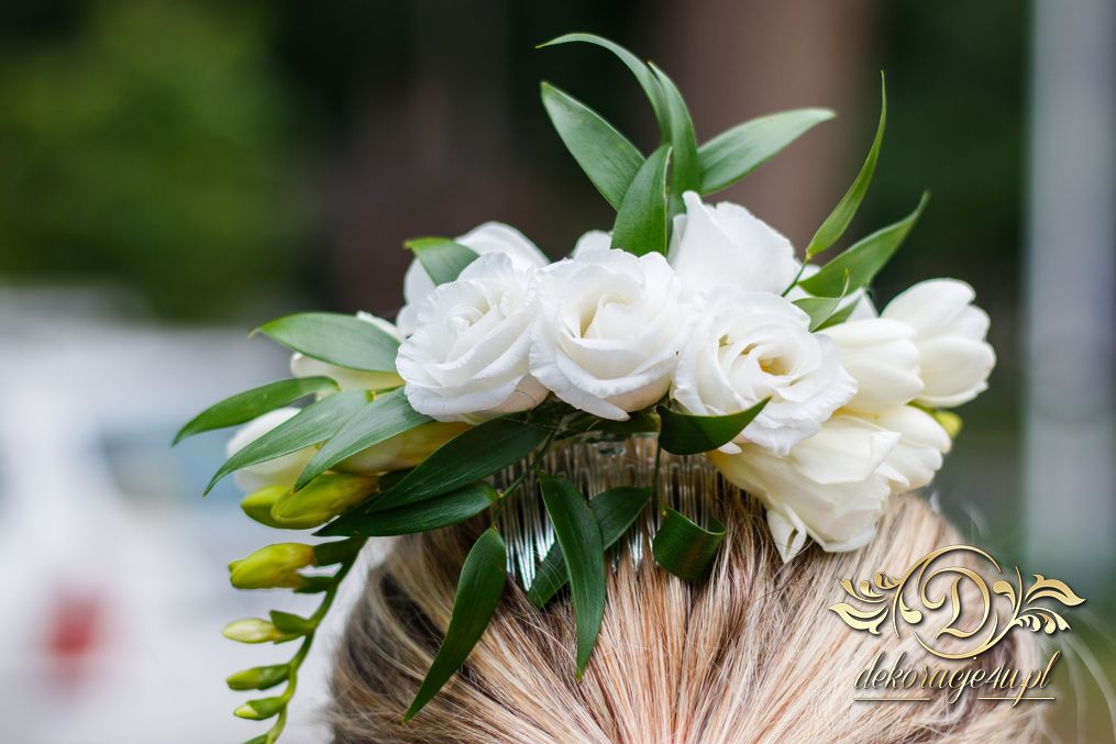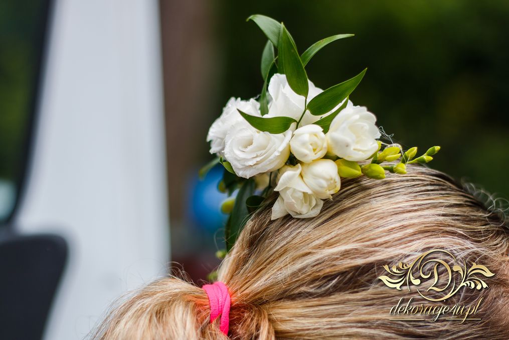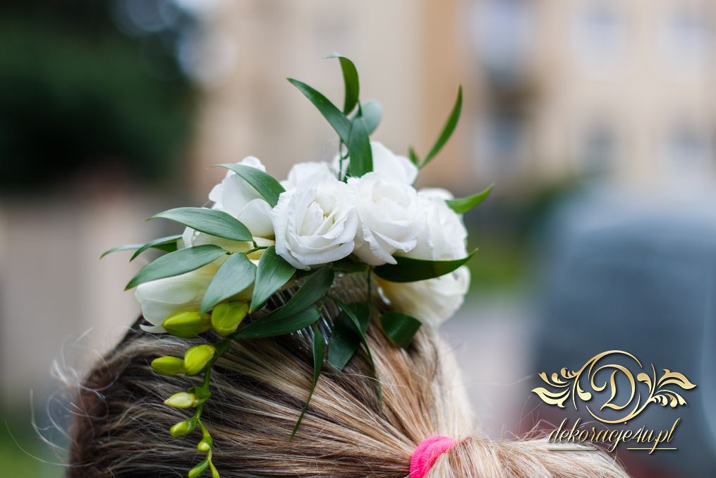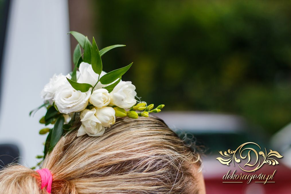 Piękne bukiety dla cudownej Pani Młodej. Jeden biel z zieleniąm, drugi biel z różem. Dodatkowo opaska na włosy.