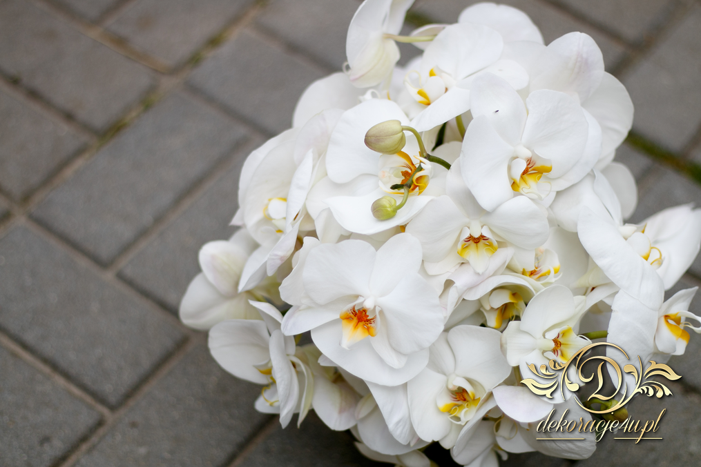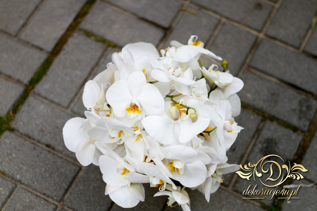 Biały storczyk dla wyjątkowej Pani Młodej dla której mieliśmy również okazję stworzyć cudną dekoracje sali weselnej w Mielcu.
