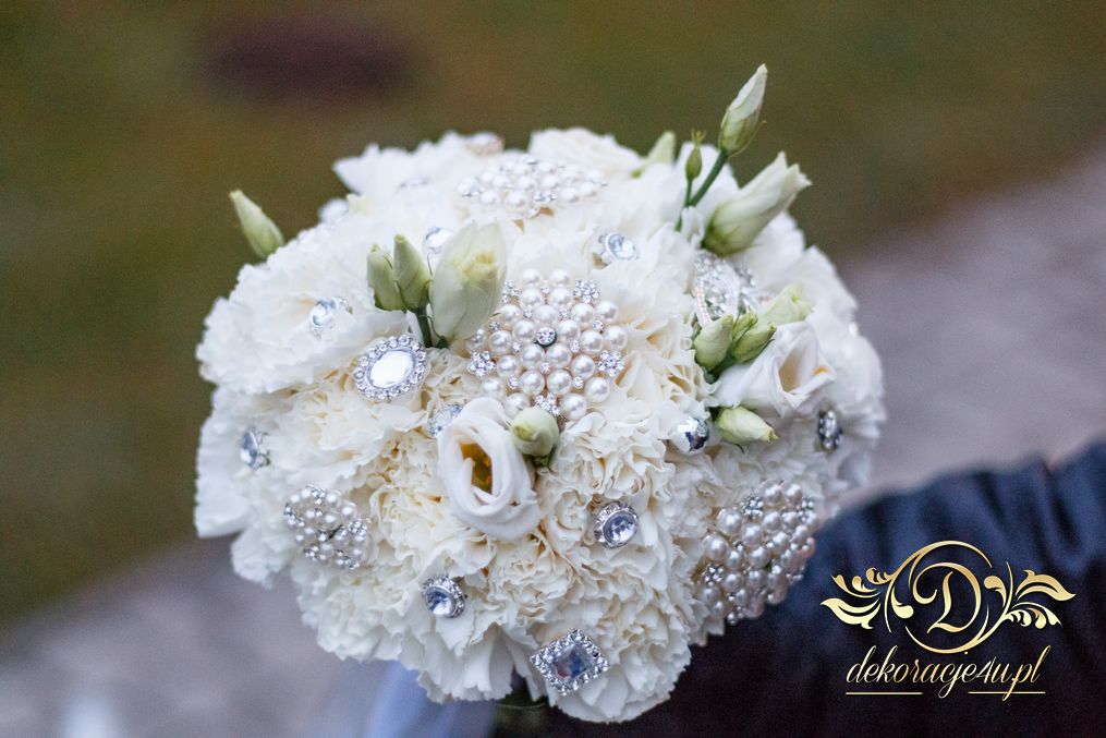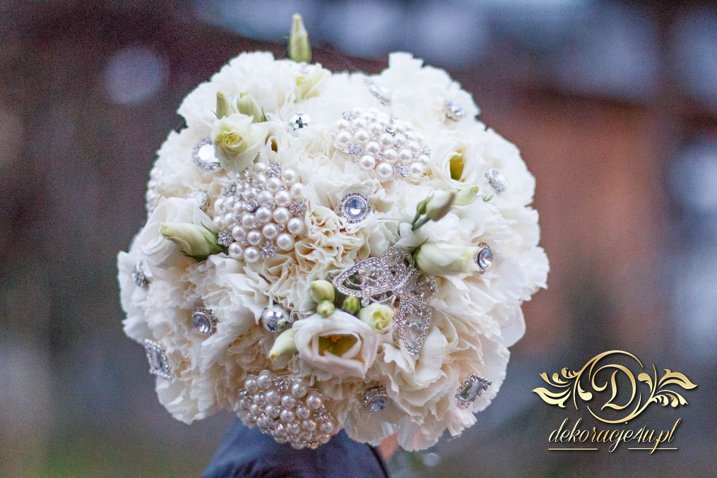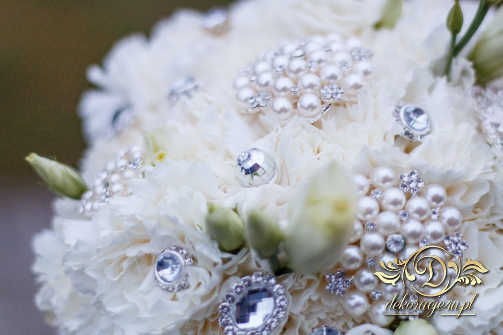Bukiet ozdobione mega modnymi broszkami. Na żywo cudowny widok.