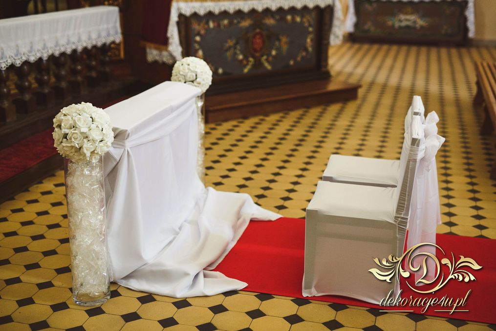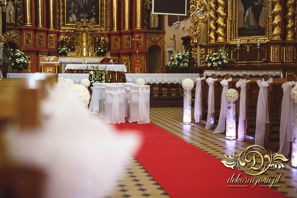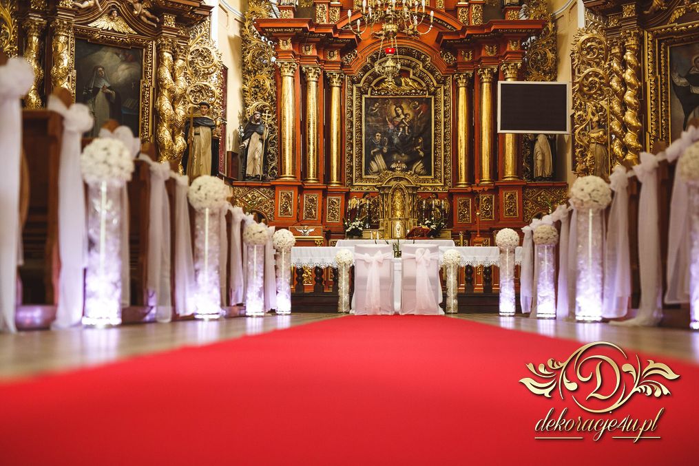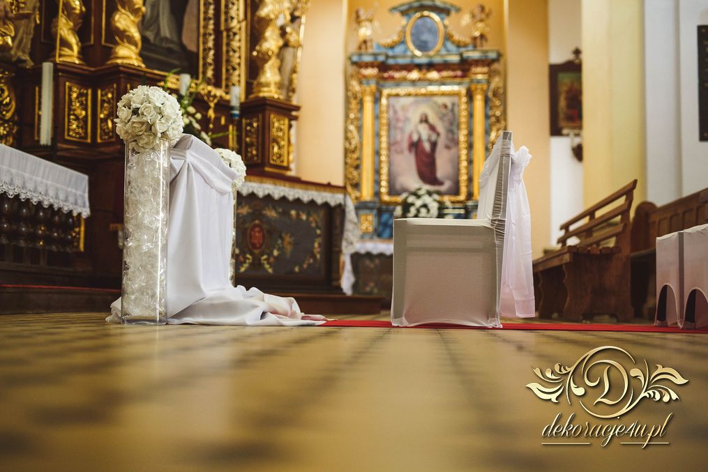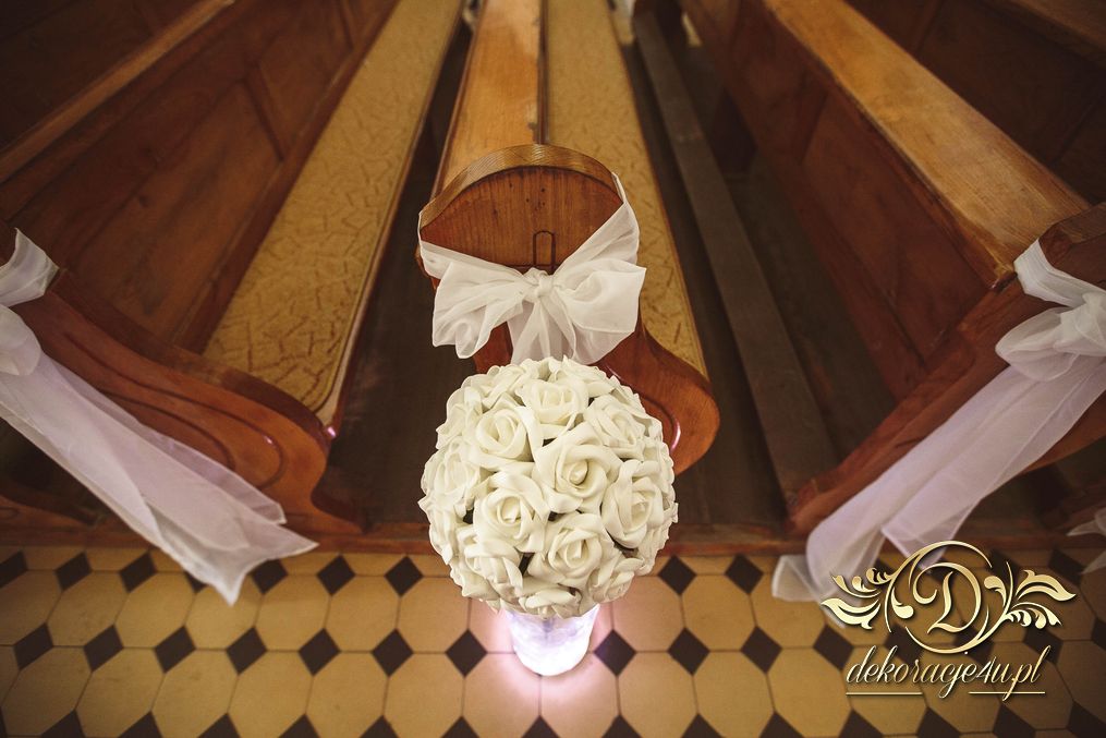W dekoracji kościoła można także użyć (zależności od zezwolenia osoby decyzyjnej w danym kościele) małych lampek ledowych, aby podświetlić wazony przy ławeczkach. Efekt końcowy wyszedł niesamowicie.