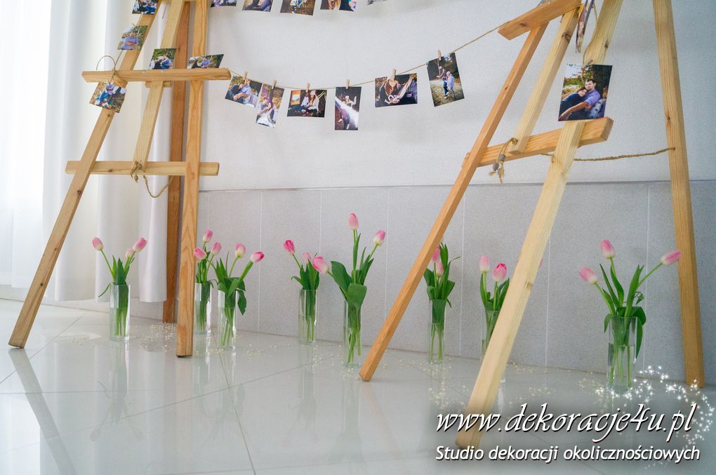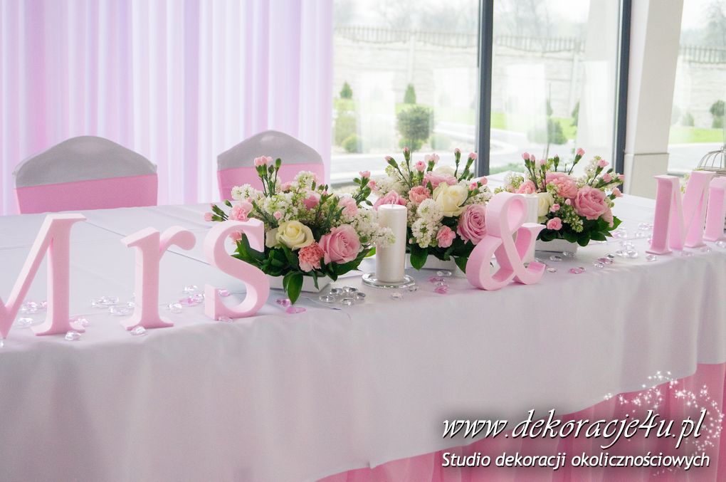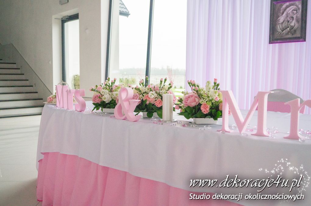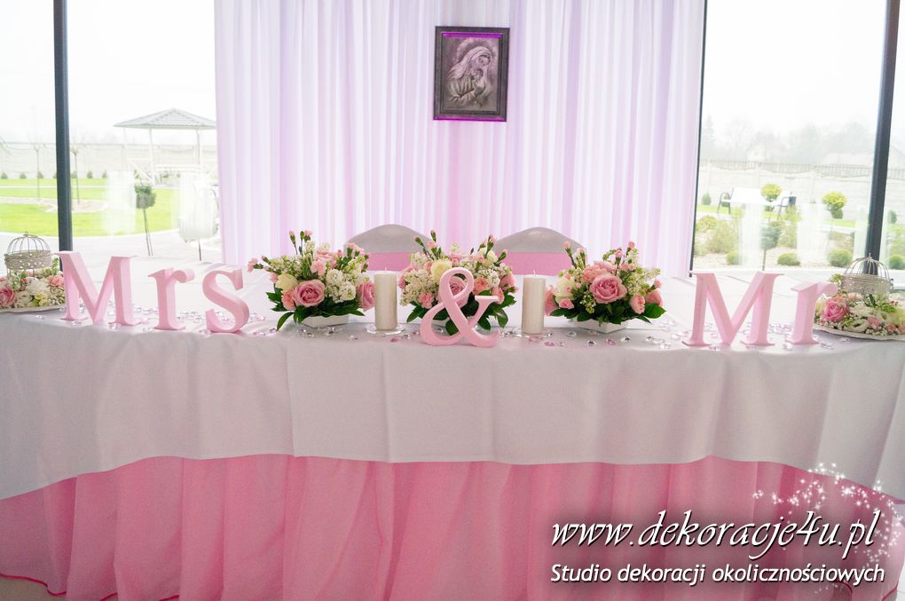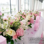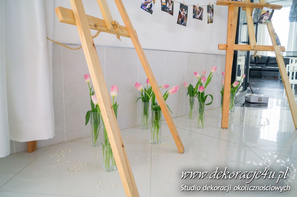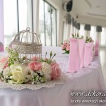 Dekoracja sali już po raz kolejny w BoCarlo. Tym razem różowy kolor przewodni, całość uzupełniona tulipanami i pięknymi wiankami na stole głównym.