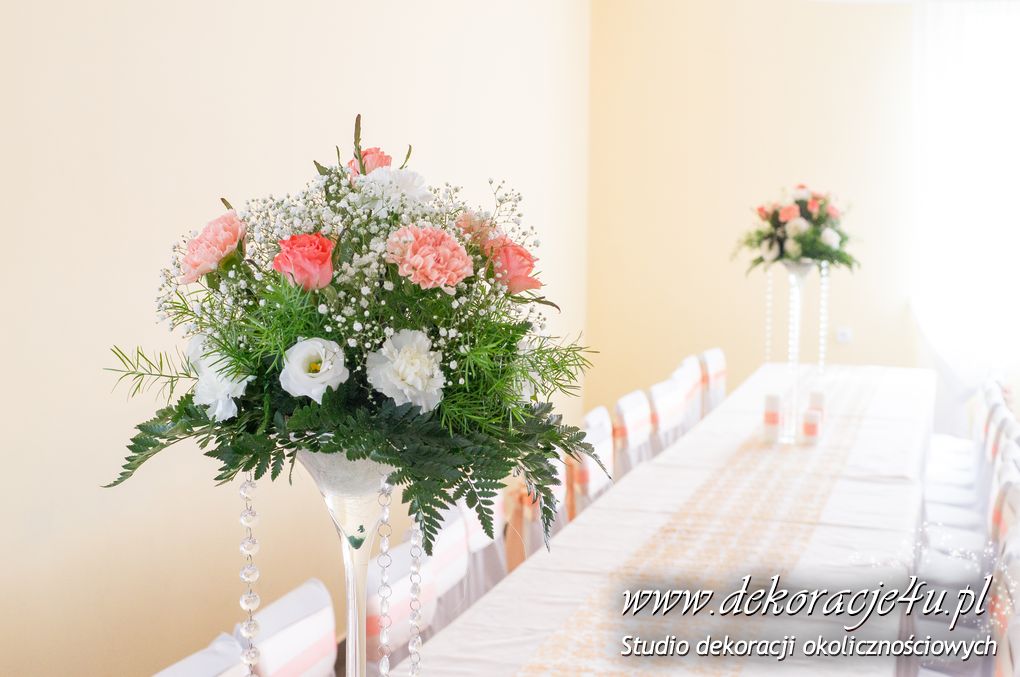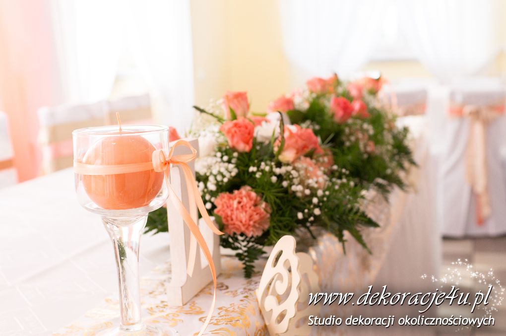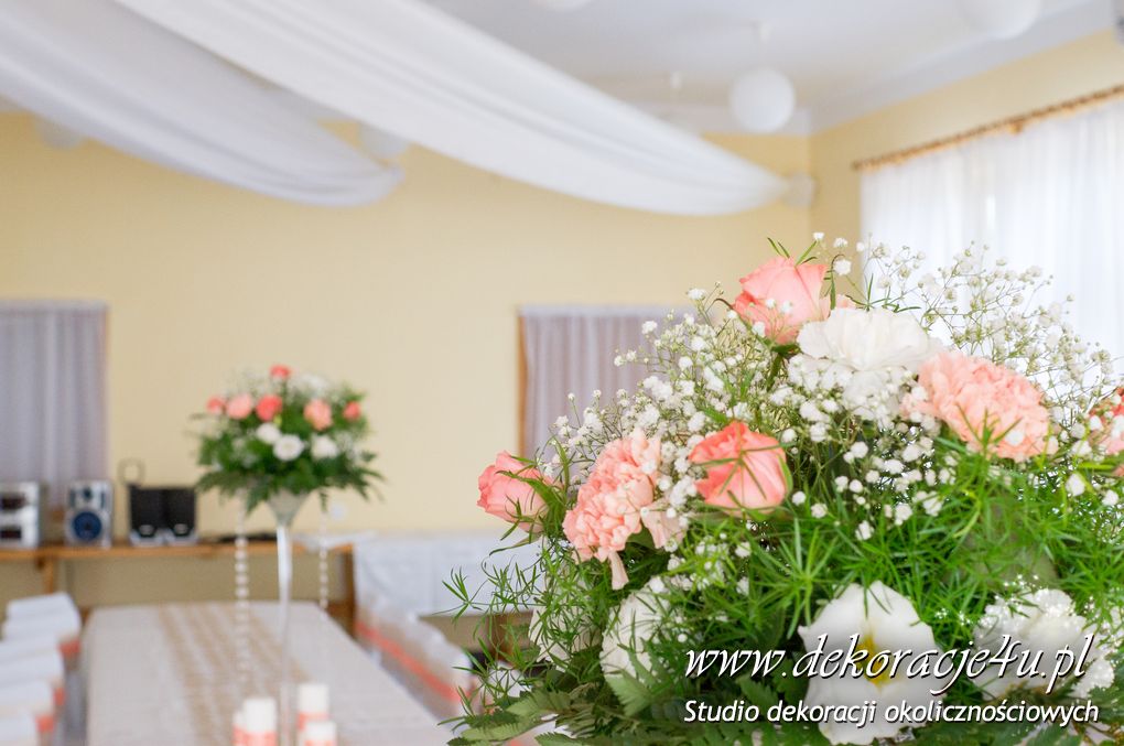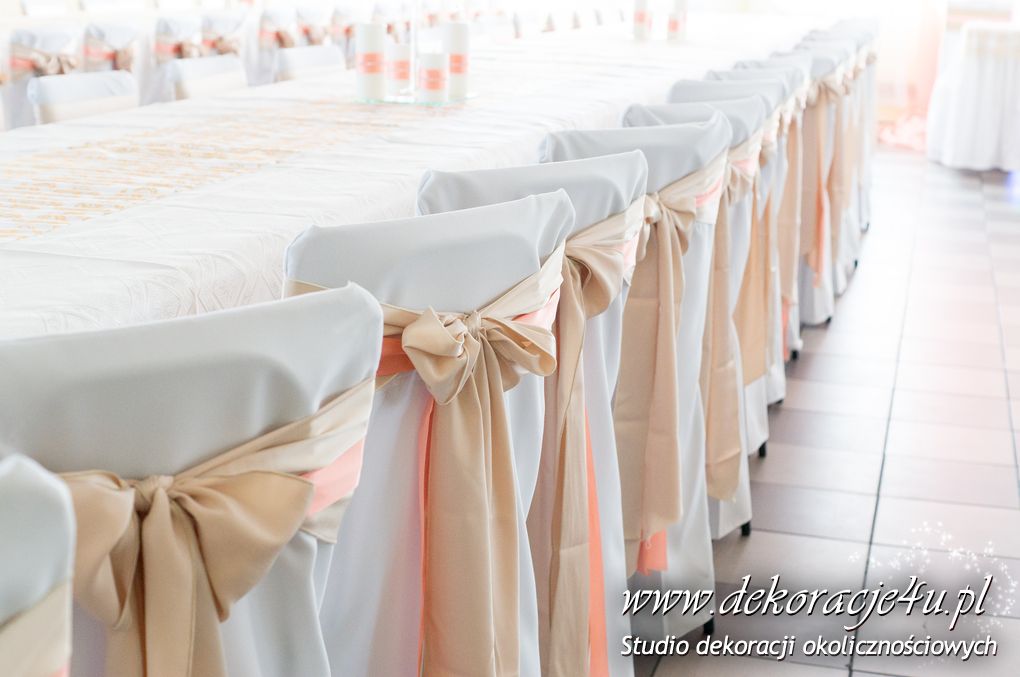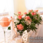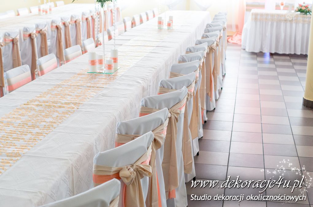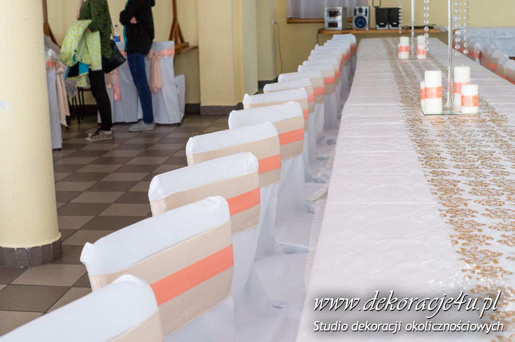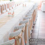 W sali weselnej w Kamieniu przewaga koloru bieli i brzoskwini i w takiej oto kolorystyce została stworzona dekoracja sali. Dekoracja sufitów w dwóch salach z dodatkiem lampionów. na sali jadalnej pokrowce na krzesła ozdobione szarfami w kolorze, na stołach ciekawe bieżniki. Kwiaty postawione na lustrach, a w koło świeczki. Prezydium ciekawie podświetlone i udekorowane w kwiaty.