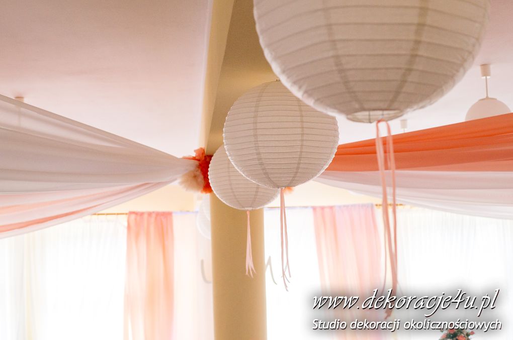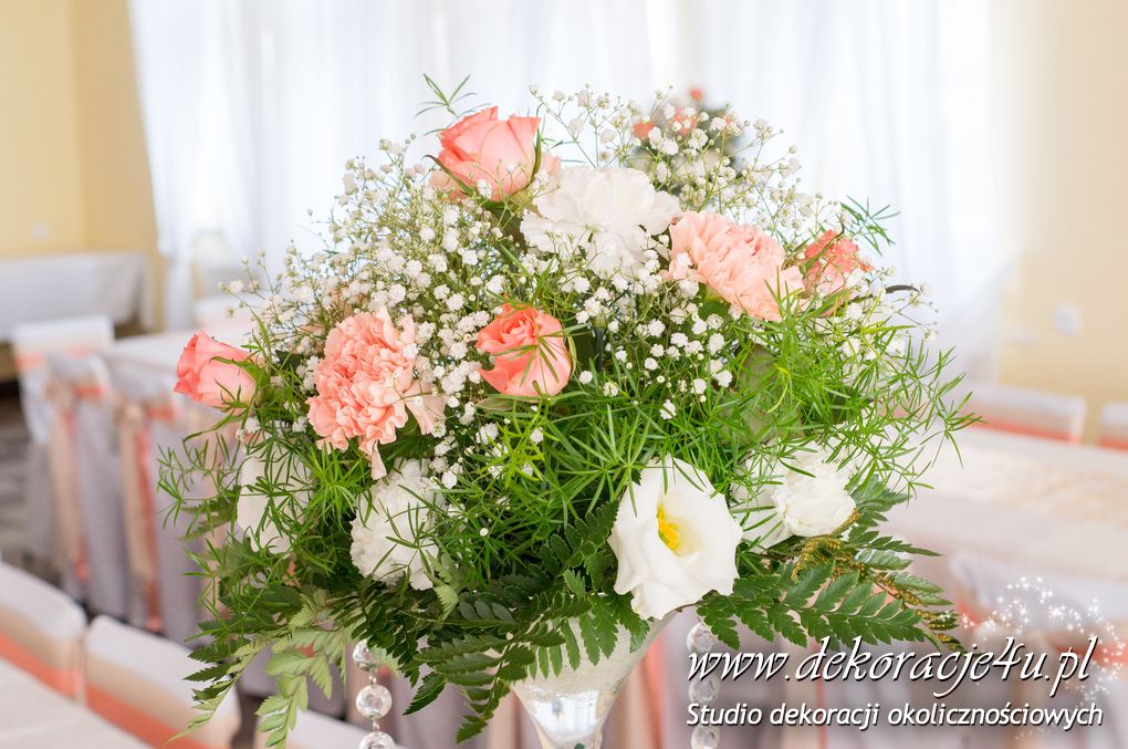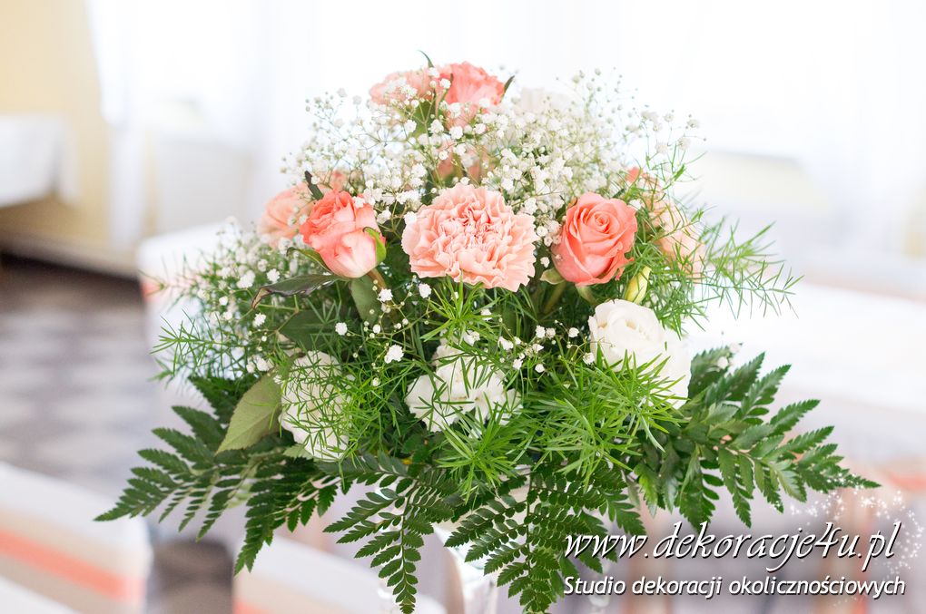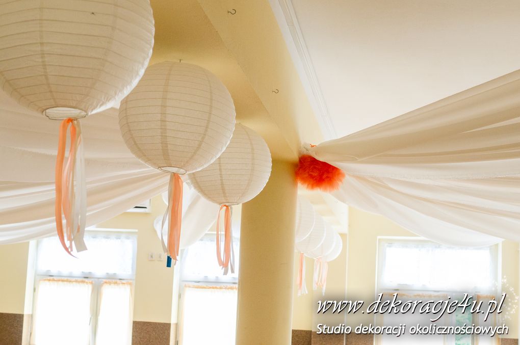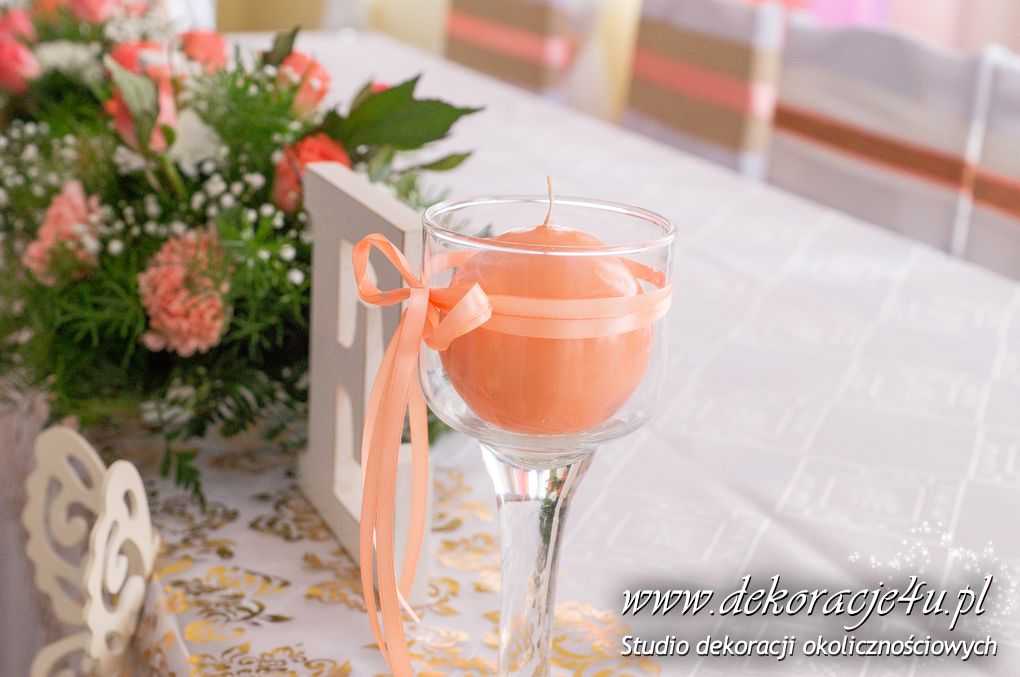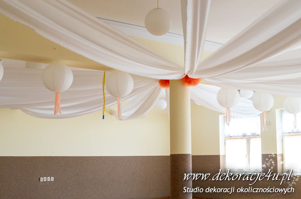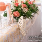 W sali weselnej w Kamieniu przewaga koloru bieli i brzoskwini i w takiej oto kolorystyce została stworzona dekoracja sali. Dekoracja sufitów w dwóch salach z dodatkiem lampionów. na sali jadalnej pokrowce na krzesła ozdobione szarfami w kolorze, na stołach ciekawe bieżniki. Kwiaty postawione na lustrach, a w koło świeczki. Prezydium ciekawie podświetlone i udekorowane w kwiaty.