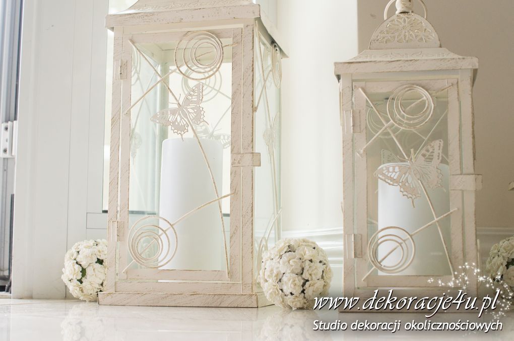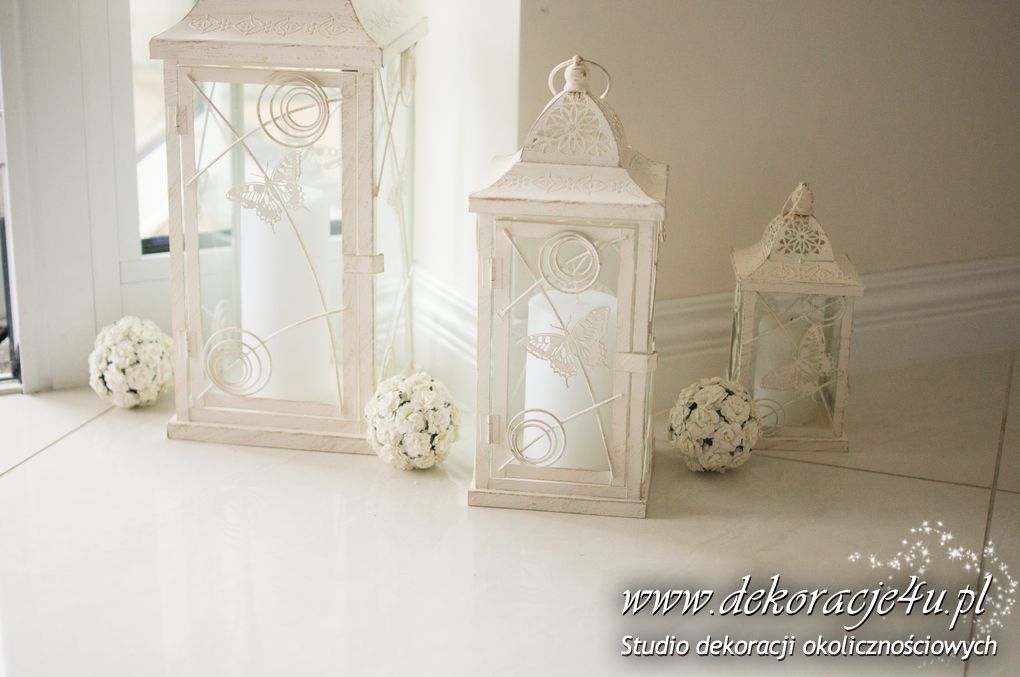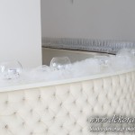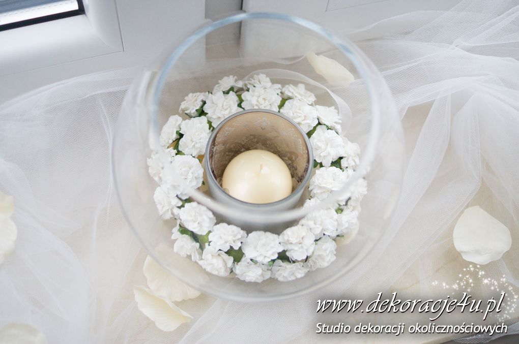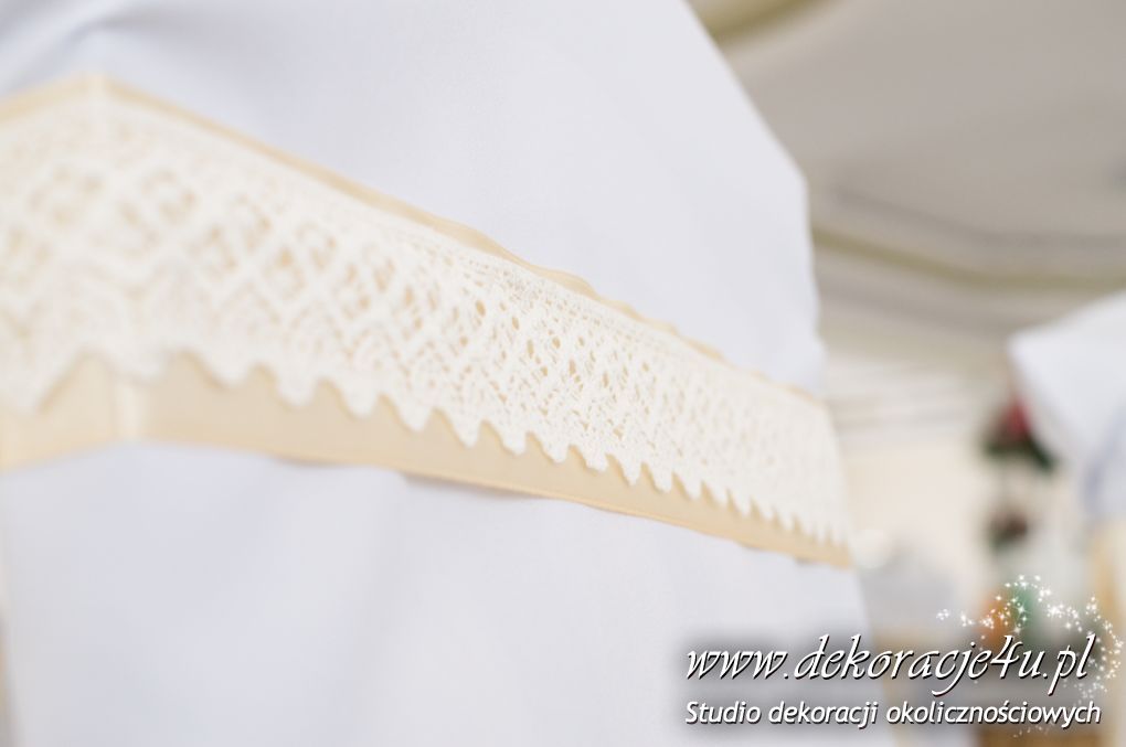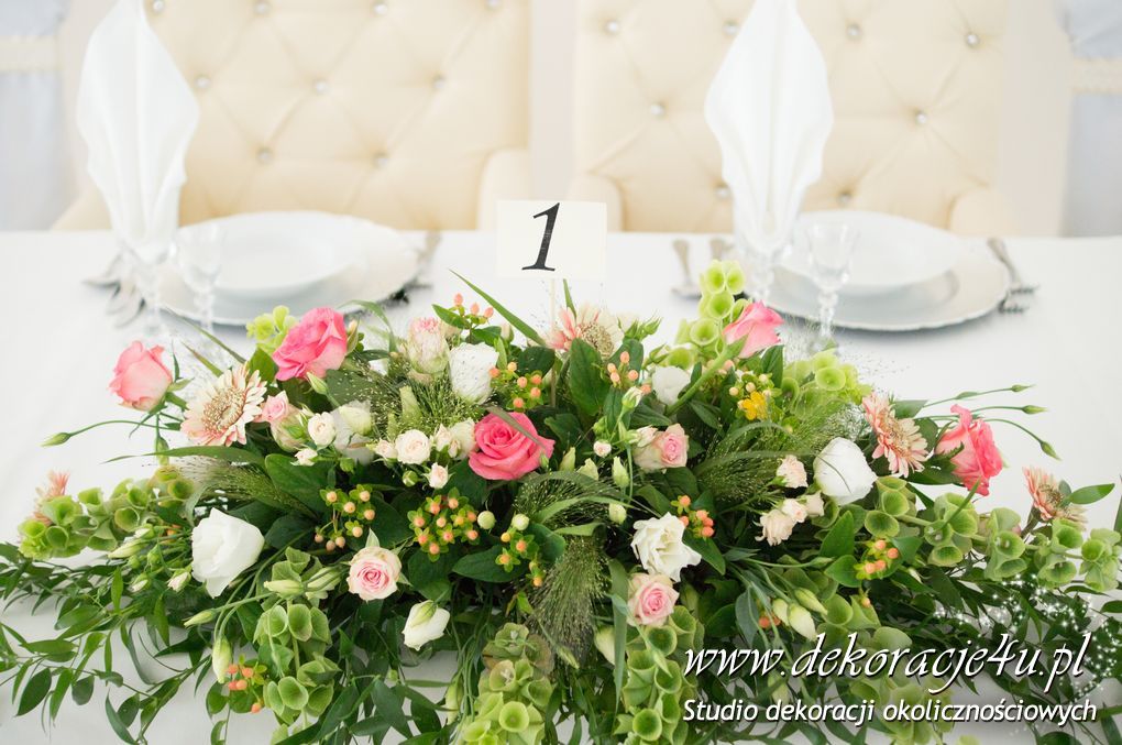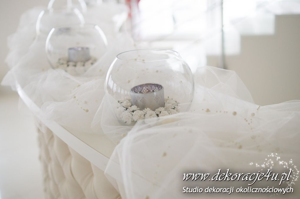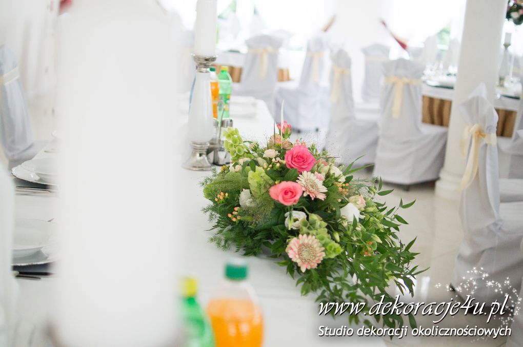Dekoracja Dworu Olimp do obejrzenia na zdjęciach poniżej. Z naszej strony Dwór został upiększony o przepiękne pokrowce z kremową wstążką z dodatkiem koronki. Ponadto, na parapetach oraz na barze zostały ulokowane wazony ze świecami. Na stołach pojawiły się przepiękne kompozycje kwiatowe, które niesamowicie wkomponowały się w całość wystroju. Dodatkowo, do bukietów zostały dodane numerki stołów. Pozdrawiamy Młodych i życzymy szczęścia 🙂