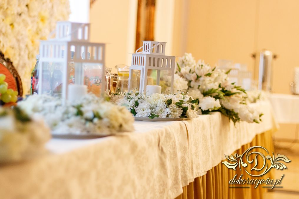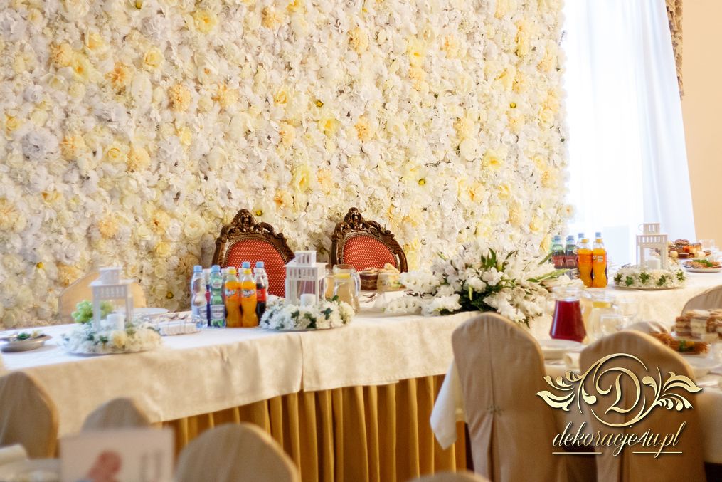 Kolejny raz nasza ścianka kwiatowa - tym razem w wydaniu Dworu Zygmuntówka. Dodatkowo jeszcze wianki z lampionami, które coraz częściej cieszą się popularnością wśród Par Młodych.