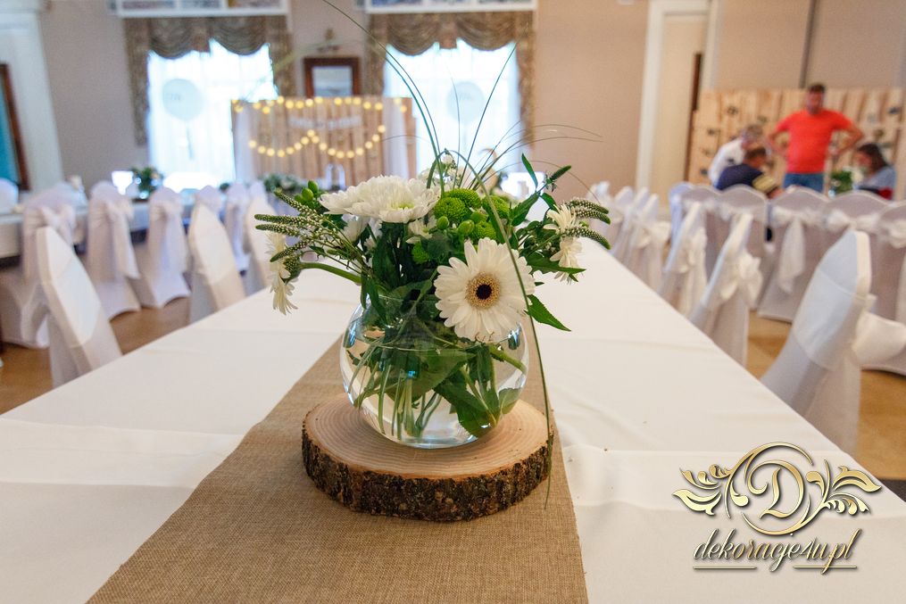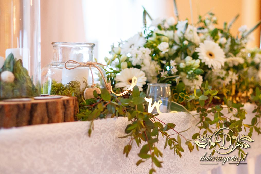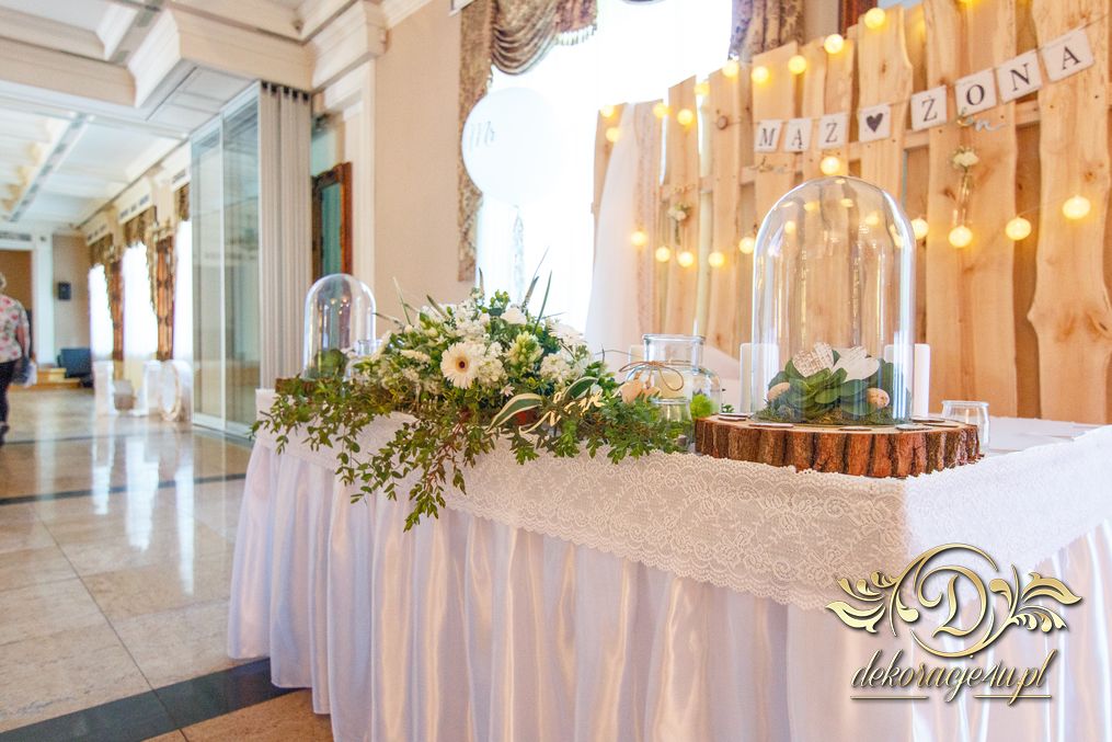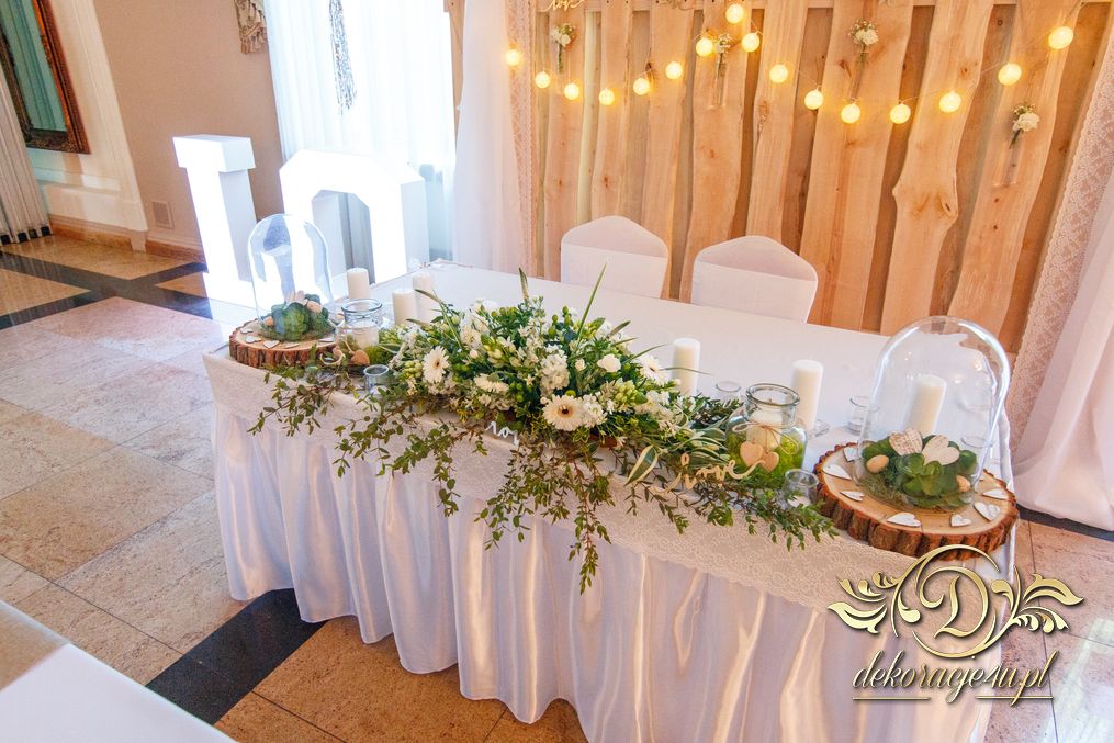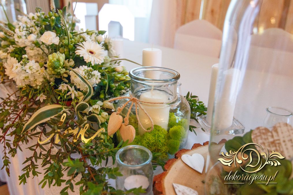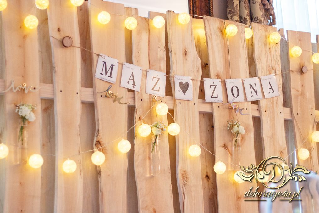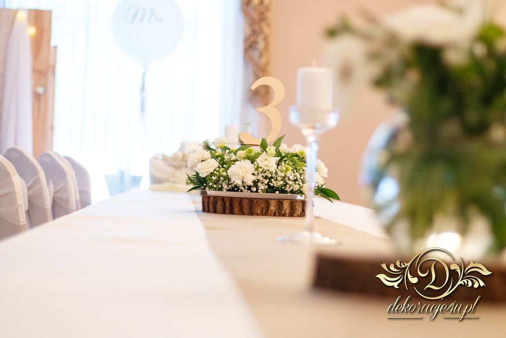 Tego wesela nie da się opisać, to trzeba po postu zobaczyć na zdjęciach. W wielkim skrócie: ogromny napis LOVE, pokrowce elastyczne, kwiaty, świece, drewno. Całość do tego miejsca wkomponowana idealnie. Radość Pani i Pana Młodego - supeeeer.