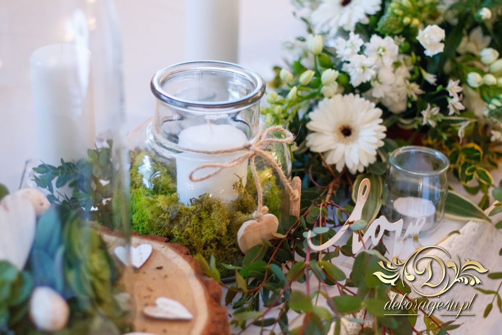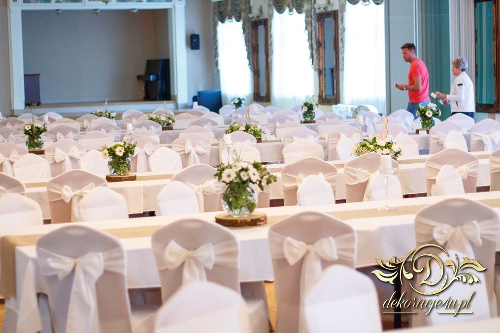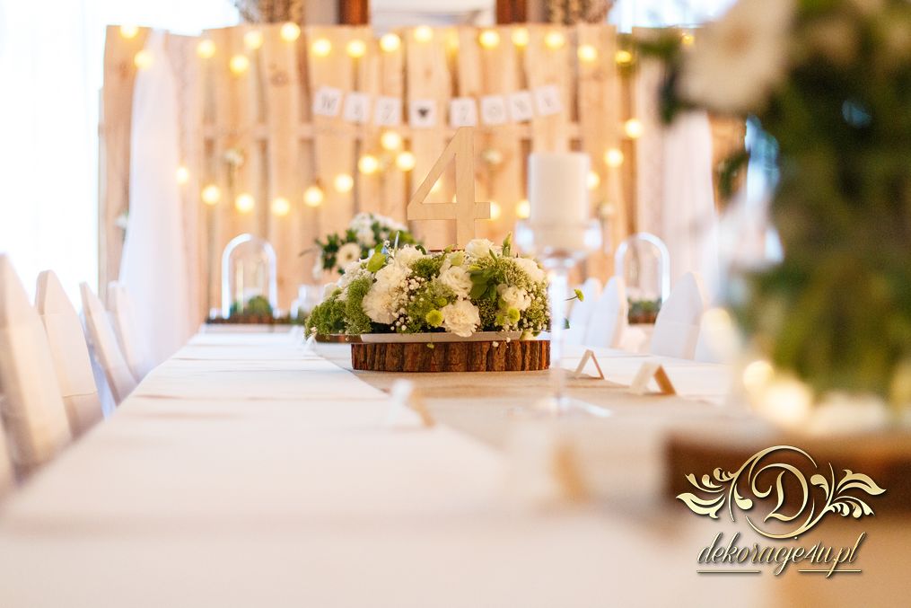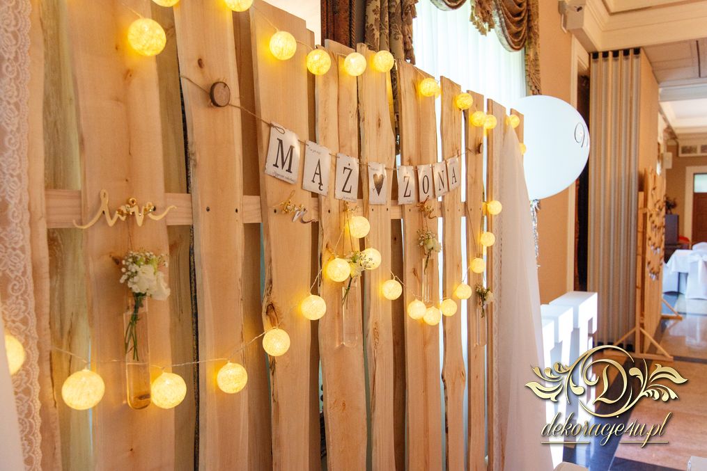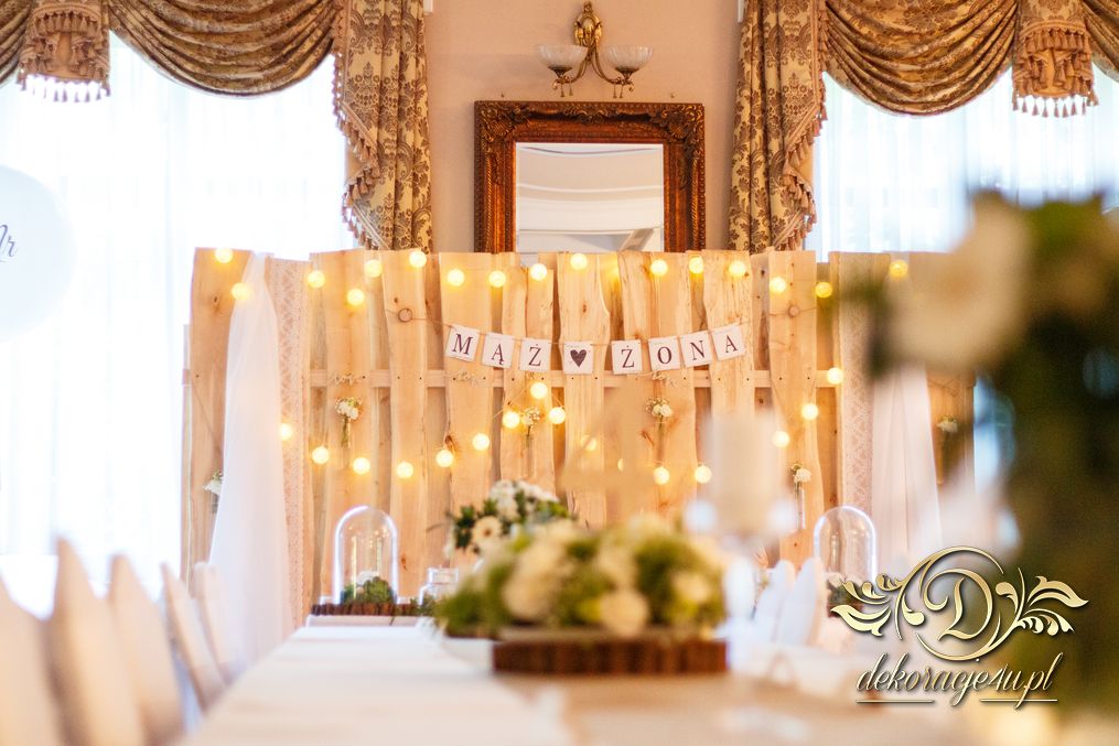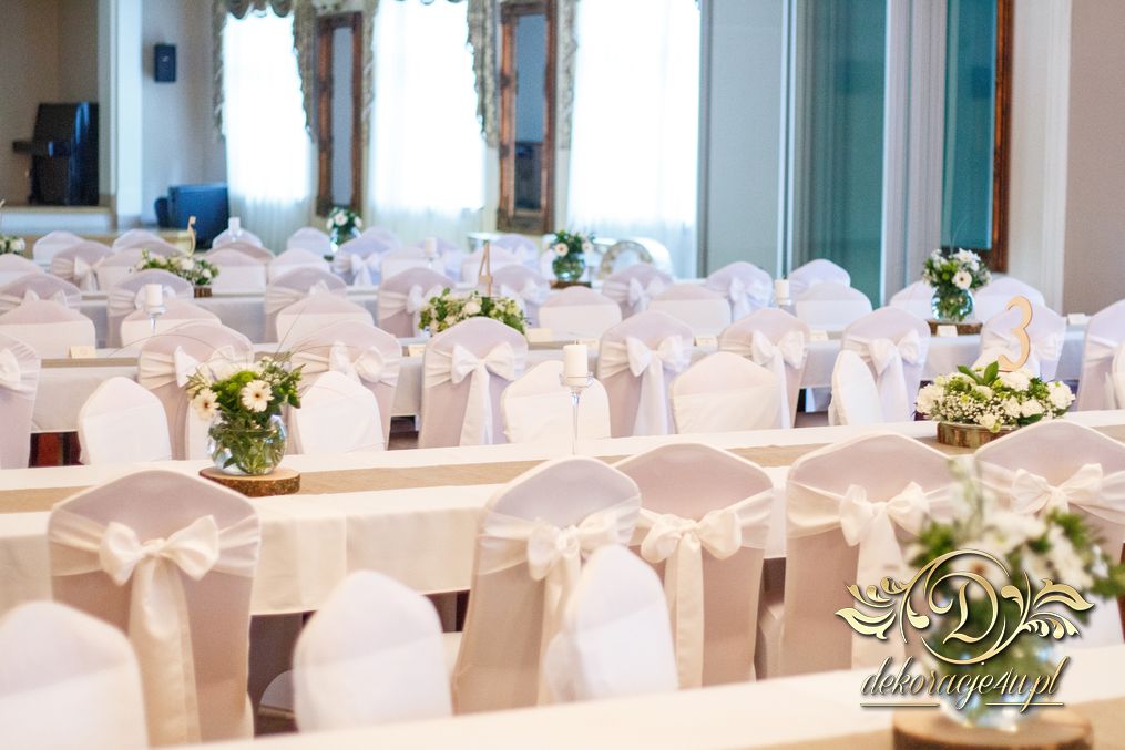 Tego wesela nie da się opisać, to trzeba po postu zobaczyć na zdjęciach. W wielkim skrócie: ogromny napis LOVE, pokrowce elastyczne, kwiaty, świece, drewno. Całość do tego miejsca wkomponowana idealnie. Radość Pani i Pana Młodego - supeeeer.