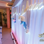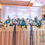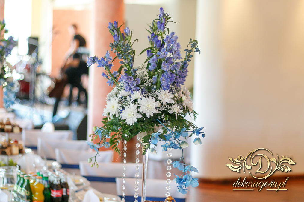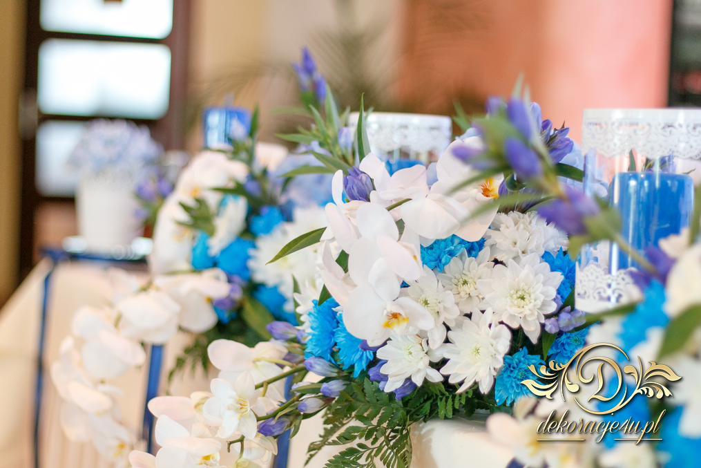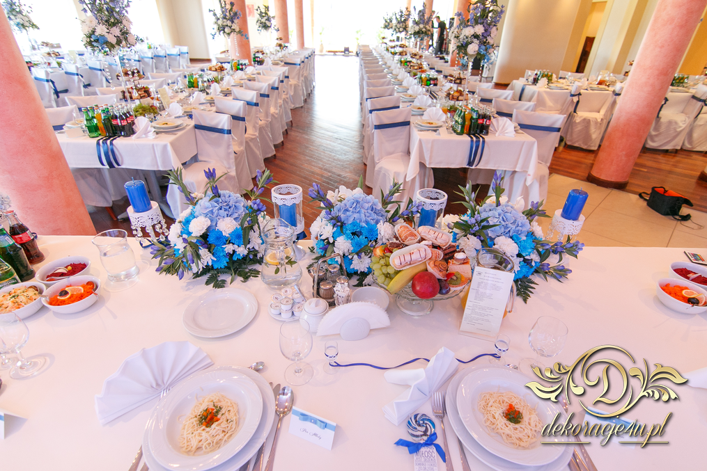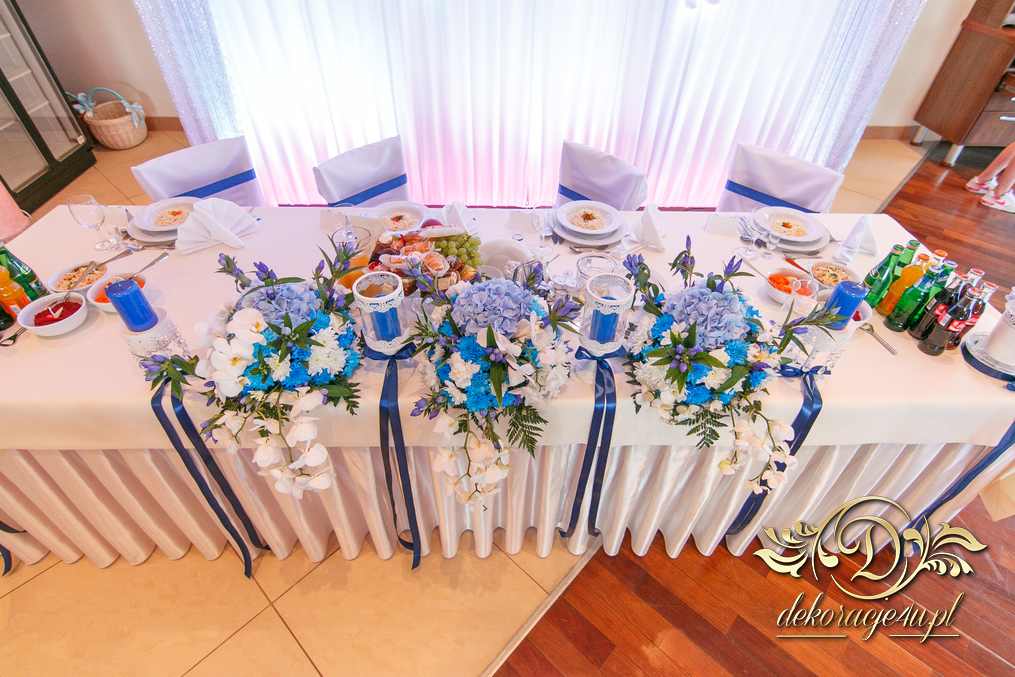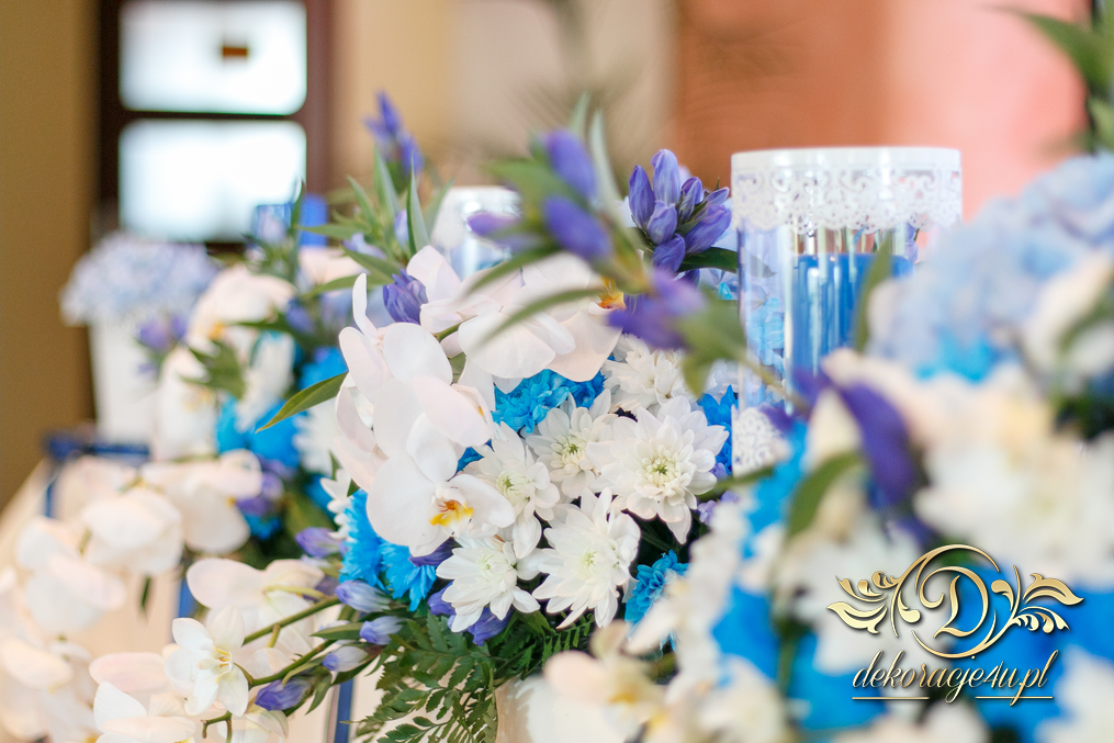 Motyw przewodni - smerfy i kolor niebieski. Efekt naprawdę zapierał dech w piersiach. Kwiaty, ścianka, krzesła, kokardki....