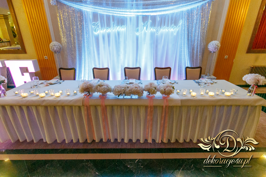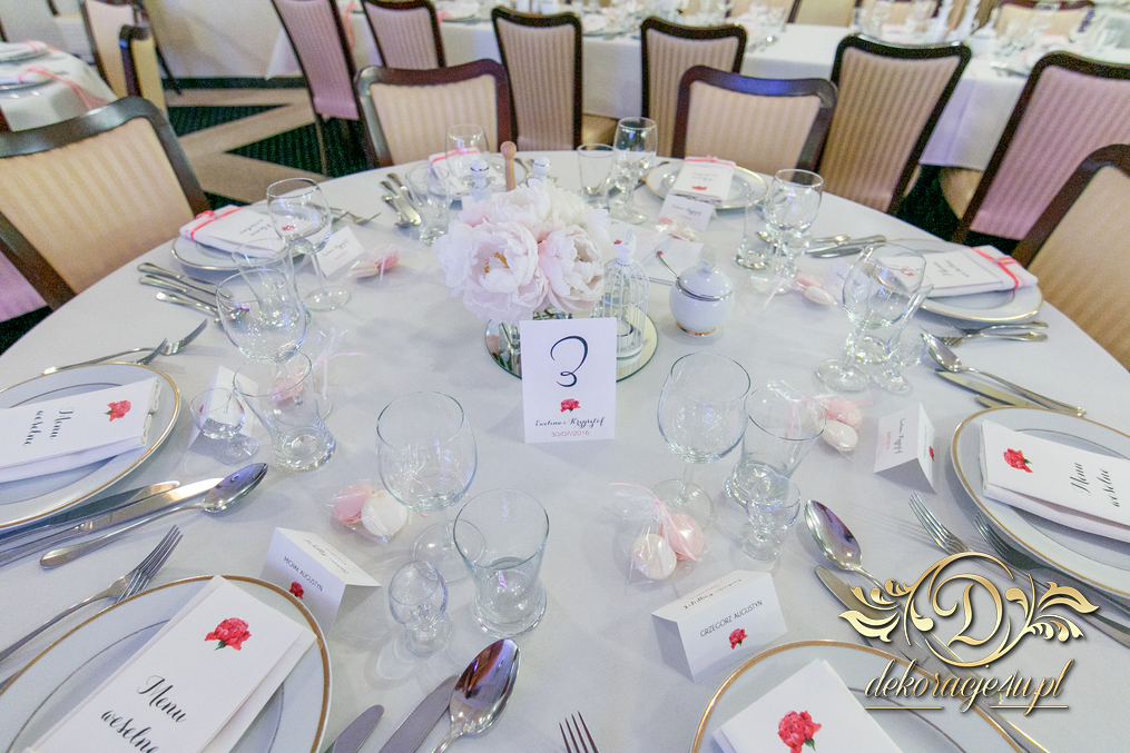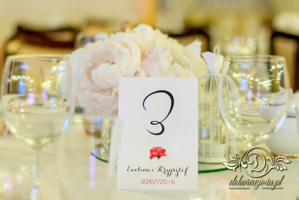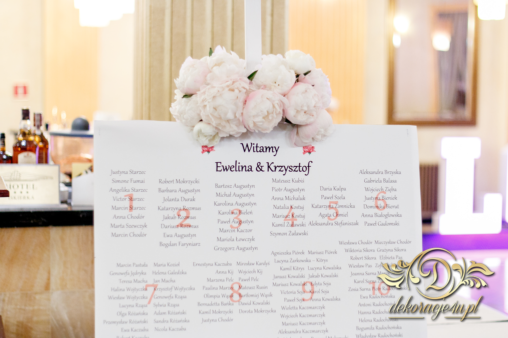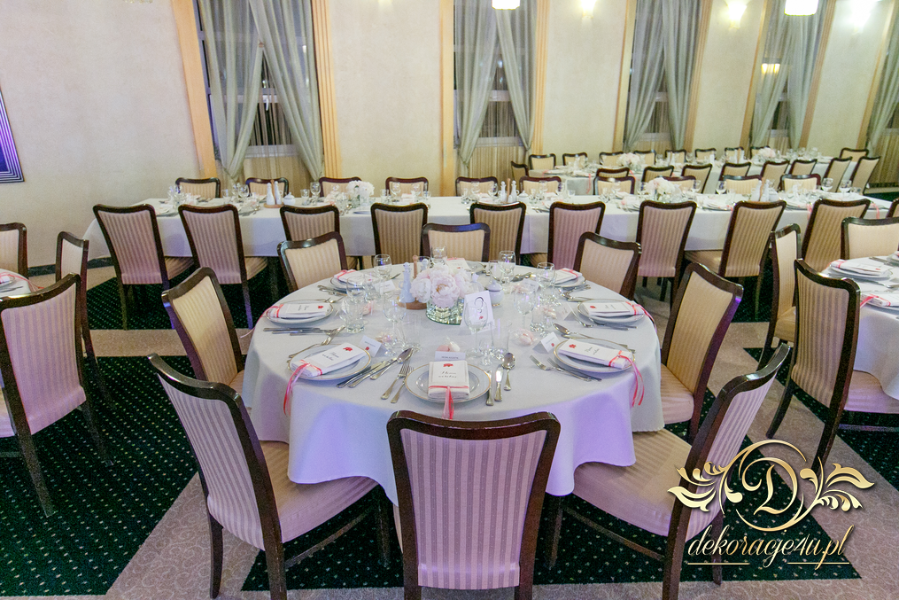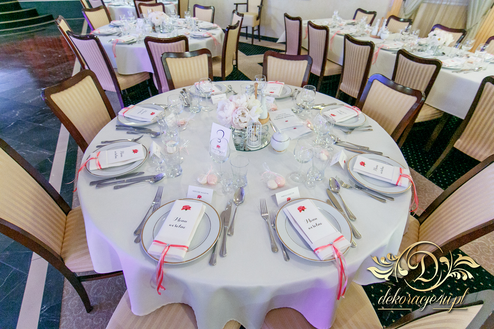 Cała dekoracja sali w piwoniach. Pani Młoda, która uwielbia piwonie postanowiła swój zachwyt przenieść także do bukietów ślubnych jak i na sale weselna. Efekt - zobaczcie sami.