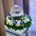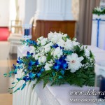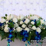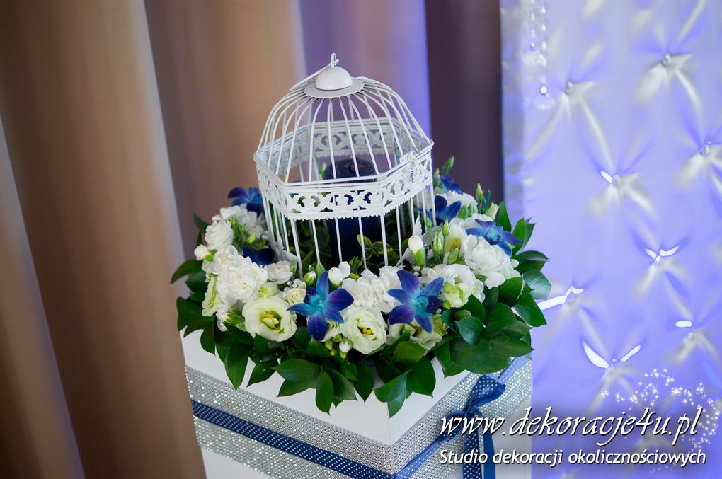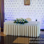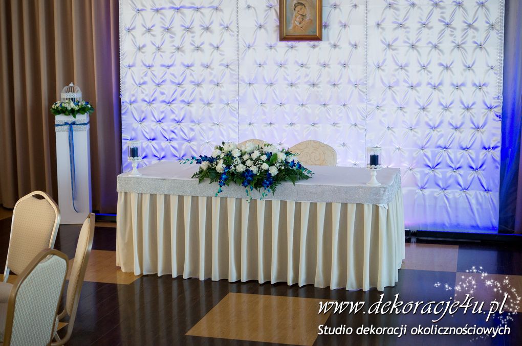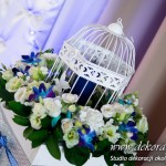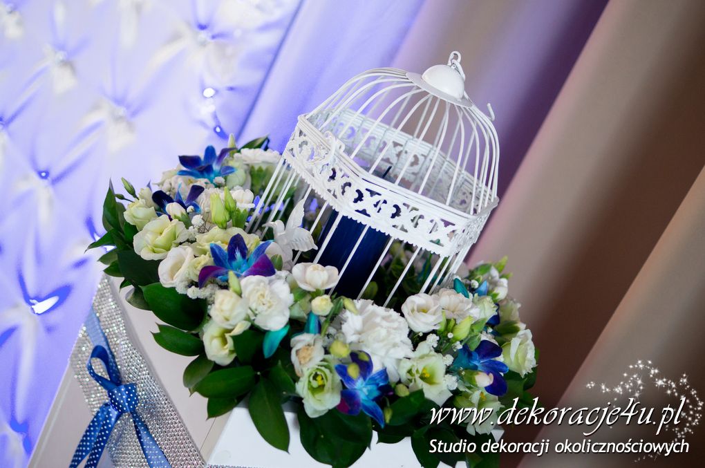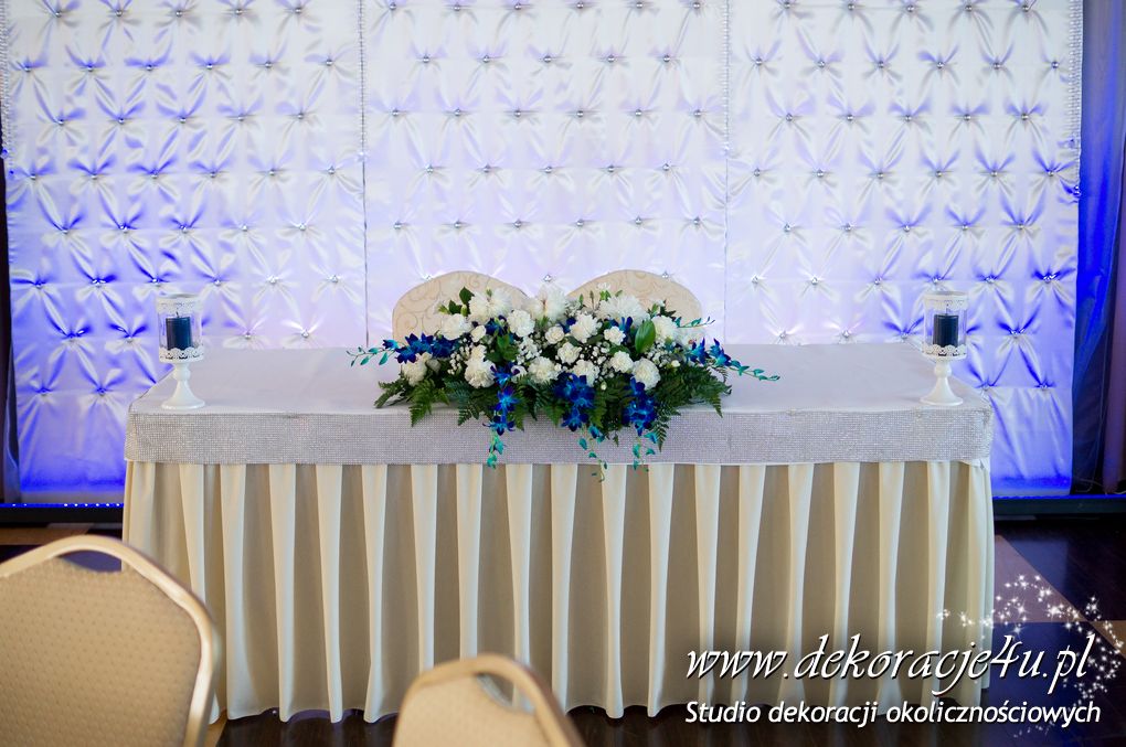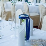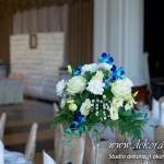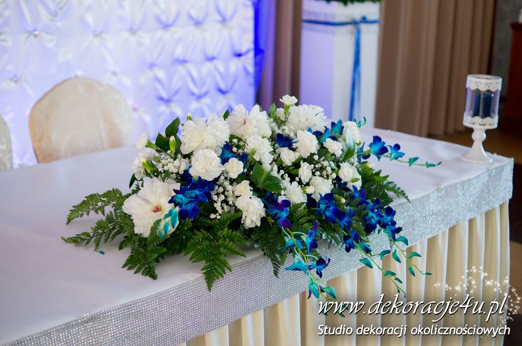 Kolejny raz mieliśmy przyjemność gościć w Hotelu Łańcut - tym razem dekoracja w kolorach granatu - ciemno niebieski i bieli. Bukiety na stoły z ciekawym wykończeniem - niebieski storczyk oraz tuby z zatopionym storczykiem i pływak. Dekoracja Prezydium to ciekawa ścianka z pikówki i obok postumenty z wianuszkami i lampion. Wszystko utrzymane w elegancji i kolorystyce dekoracji.