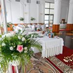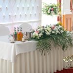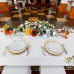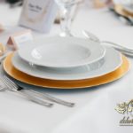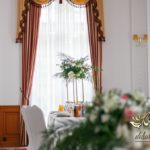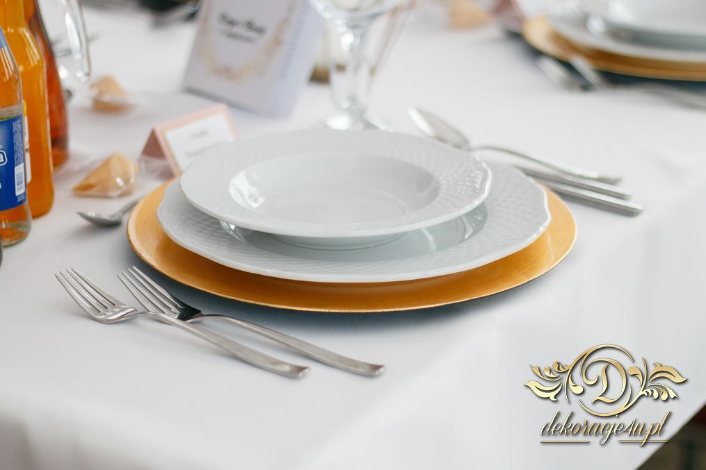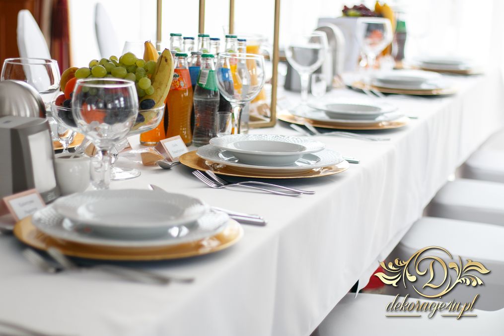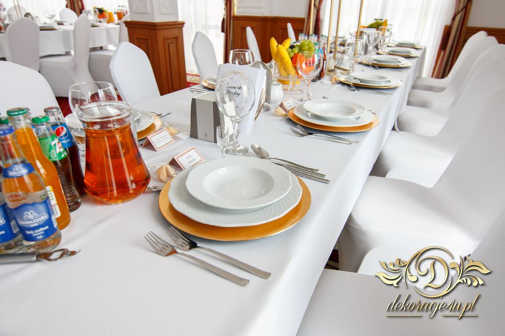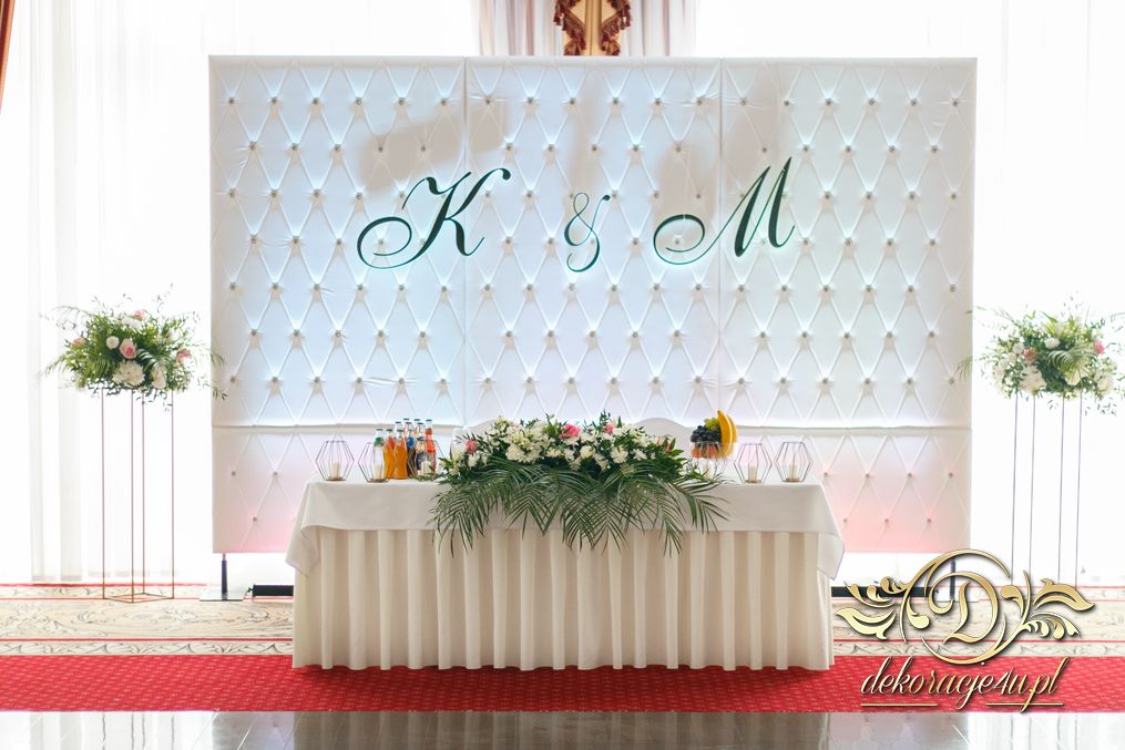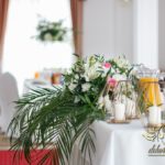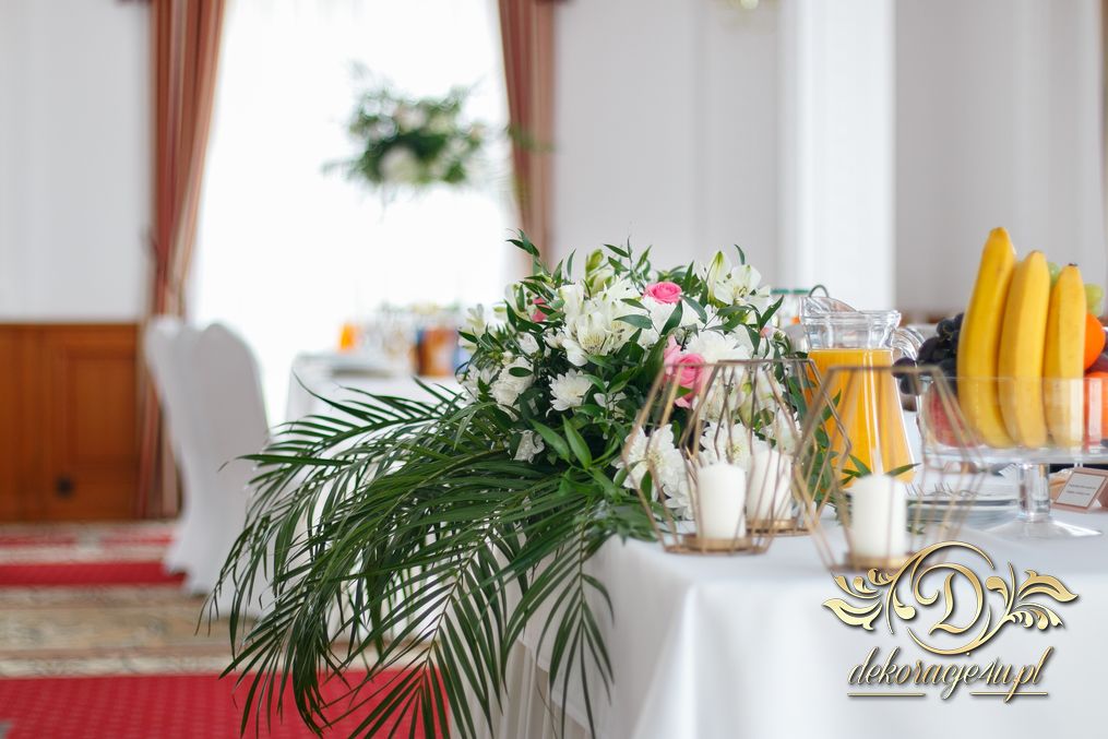 Kolejna dekoracja w Hotelu Łańcut - złote podtalerze, ścianka pikowana, piękne bukiety - wszystko na zdjęciach poniżej.