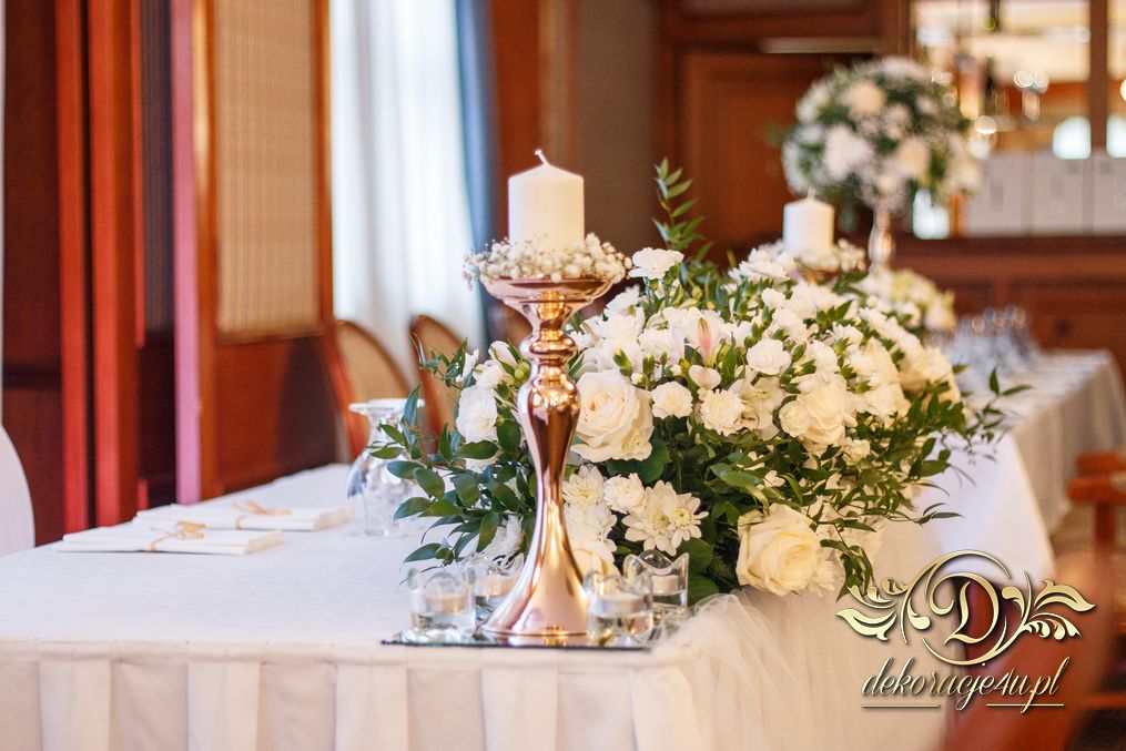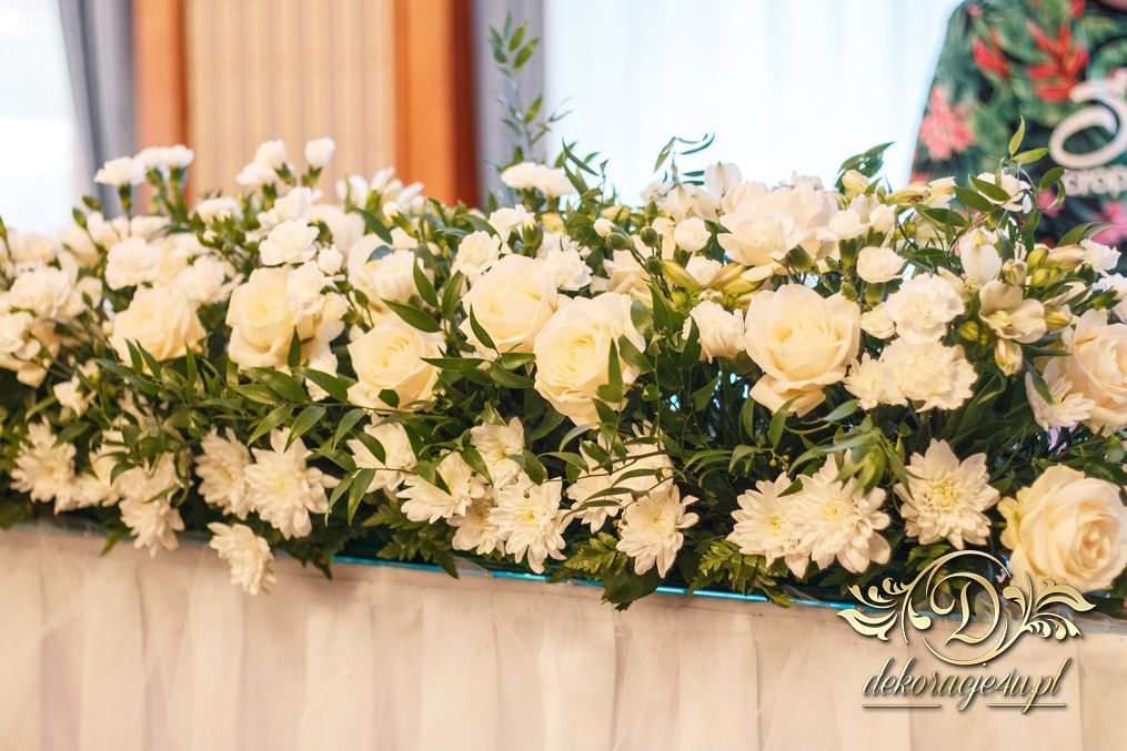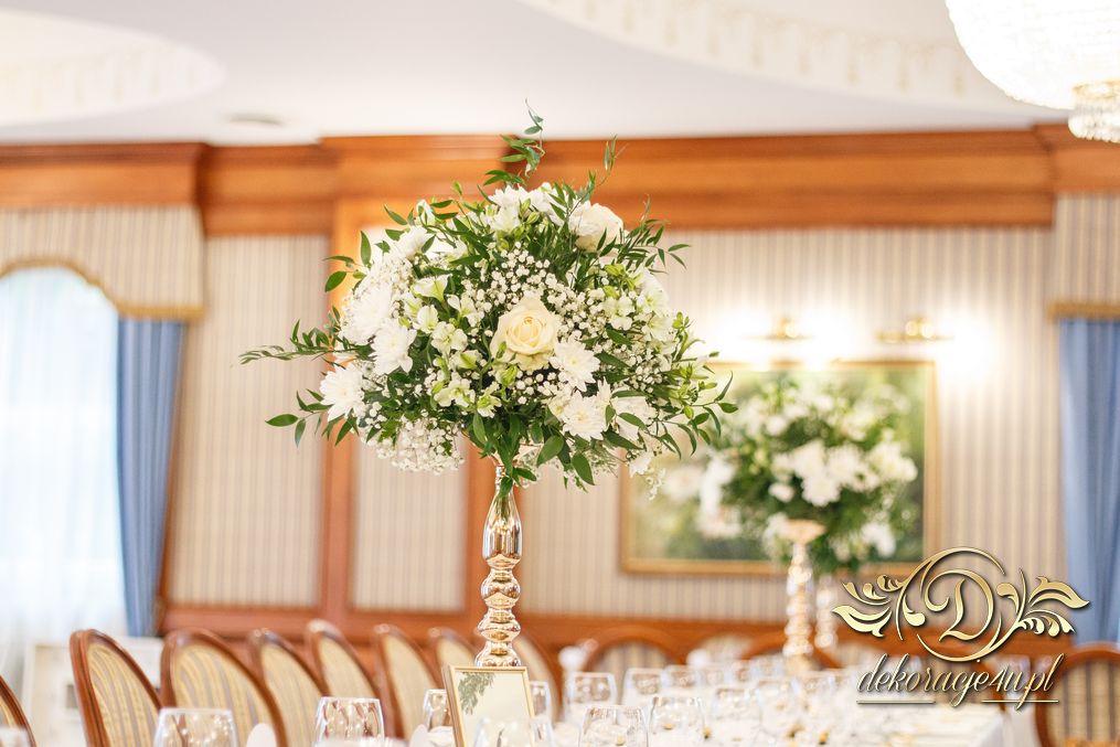 Wykonano tym razem bukiety na sale weselną w Zaczerni koło Rzeszowa. Białe z delikatnym dodatkiem zieleniny.