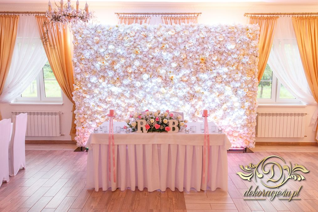Prezentacja publiczna na stronach internatowych i Facebooku naszej ścianki, która od początku sezonu robi furorę na weselu gdzie sie pojawi :). Idealnie dopasowane kwiaty z podświetleniem LED w kolorze białym.