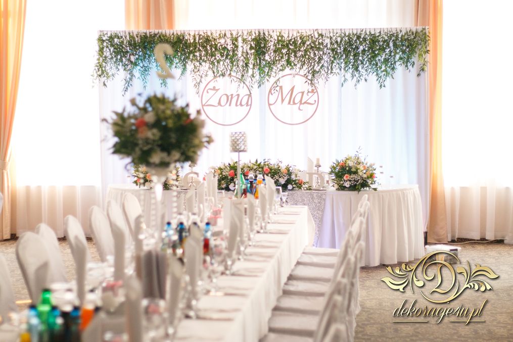 Dużo zieleni to najczęściej spotykana dekoracja na salach weselnych. Ale nie ma co się dziwić - piękno tkwi w prostocie. Para Młoda zachwycona.