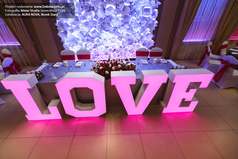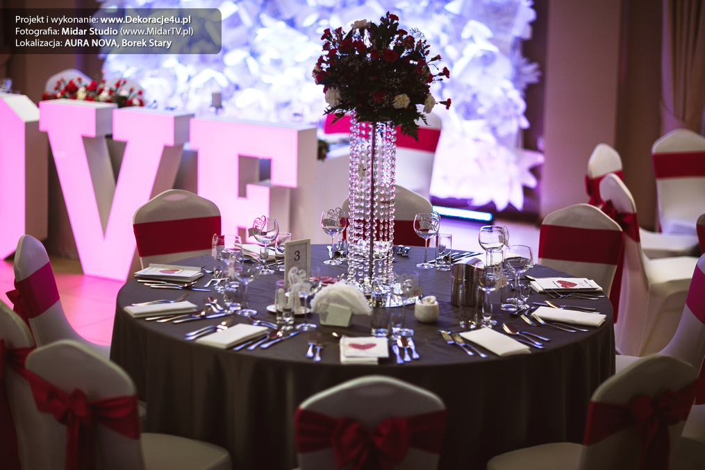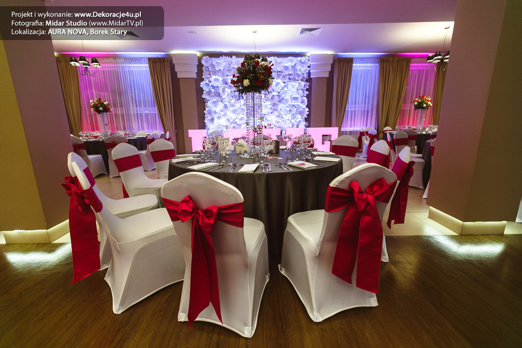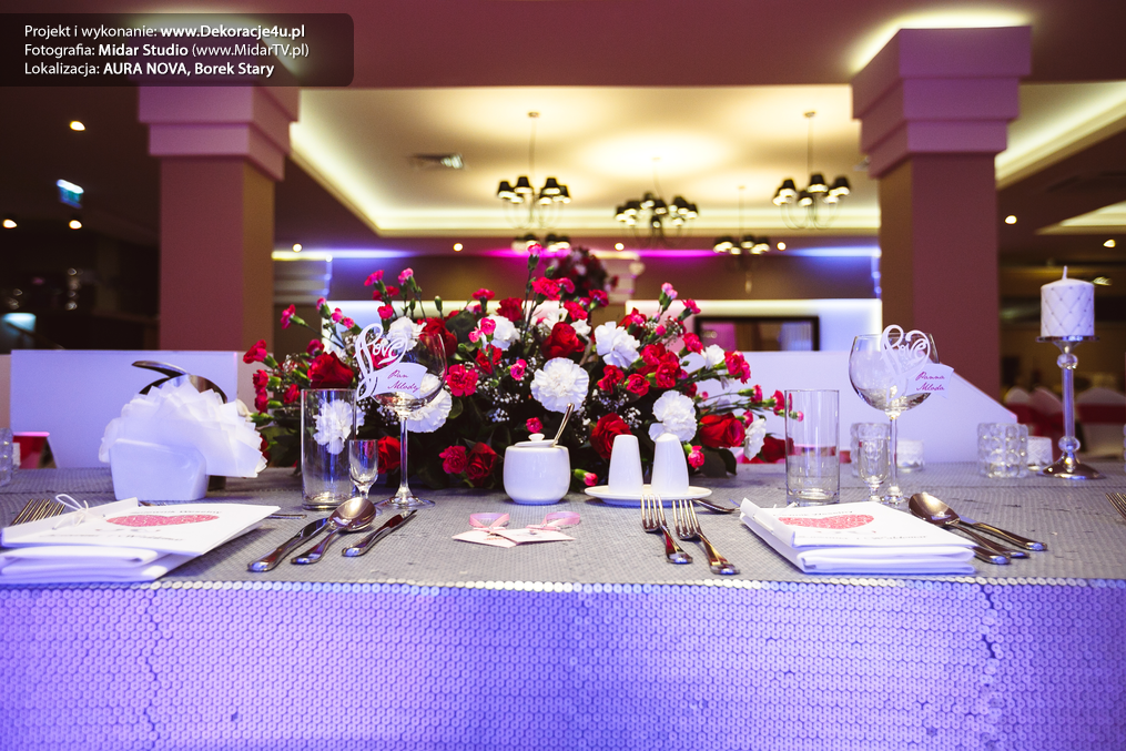 Piękna Rezydencja Aura Nova udekorowana dla wspaniałej Pary Młodej - Zuzanny i Waldemara. Wielki napis LOVE, kokardy na krzesłach, śliczne bukiety z kryształkami dodało do całości cudnego wizerunku. Dziękujemy za wspaniale ujęcia MidarStudio (http://www.midartv.pl)