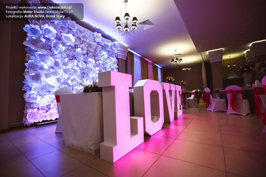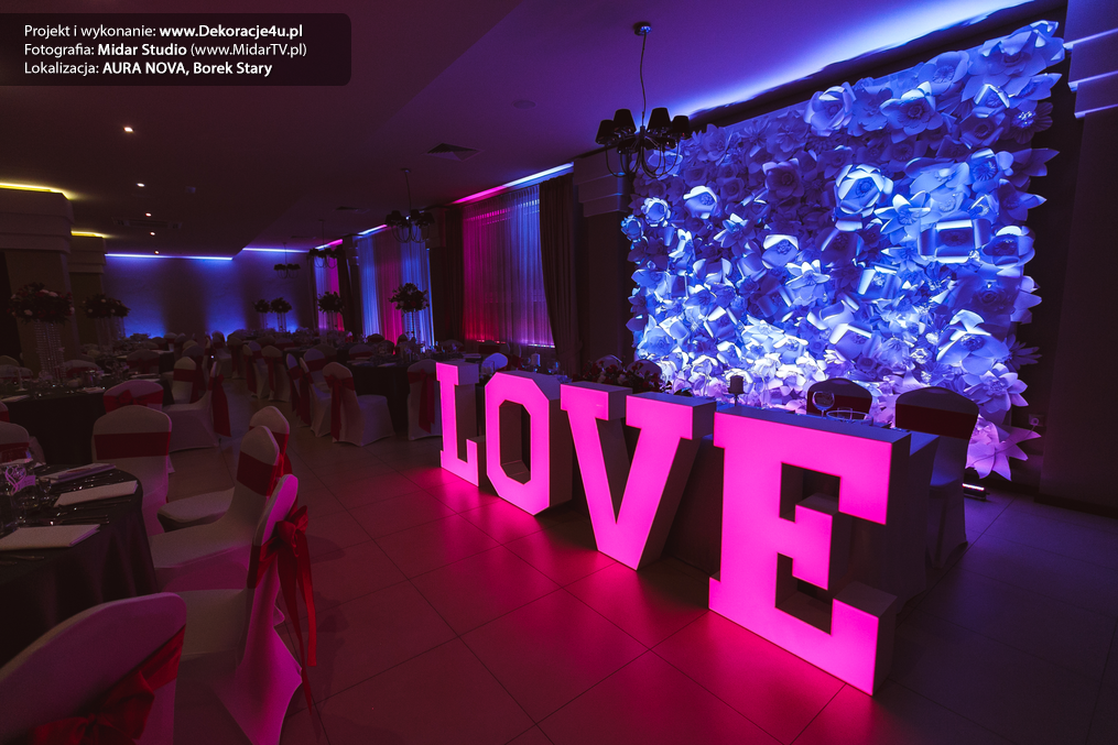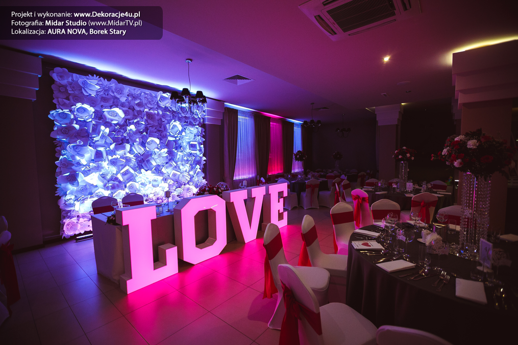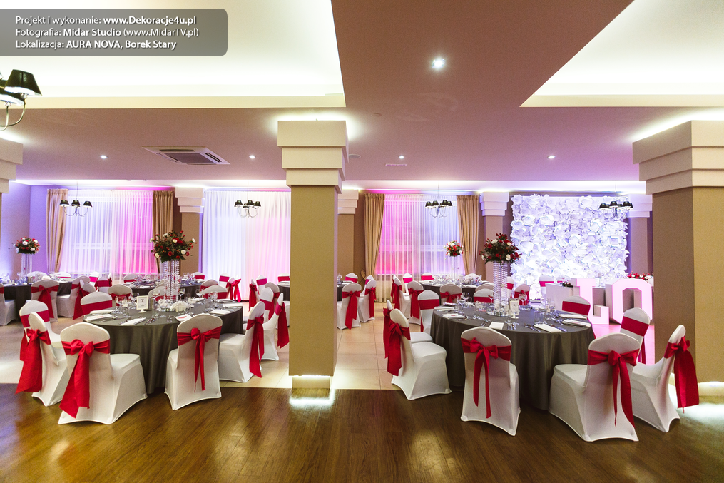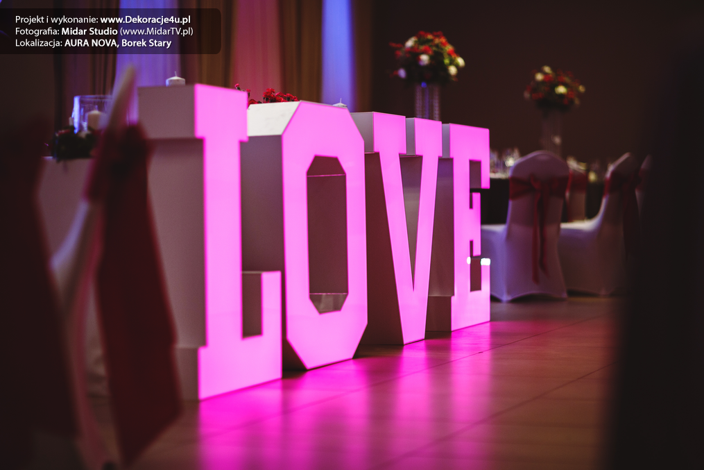 Piękna Rezydencja Aura Nova udekorowana dla wspaniałej Pary Młodej - Zuzanny i Waldemara. Wielki napis LOVE, kokardy na krzesłach, śliczne bukiety z kryształkami dodało do całości cudnego wizerunku. Dziękujemy za wspaniale ujęcia MidarStudio (http://www.midartv.pl)
