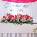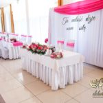 Zapewne osoby, które obserwują Nasze realizacje już przypominają sobie że gdzieś to już było. Tak. Targi ślubne w Krośnie - Państwo Młodzi zapragnęli ściankę, która jest unikatowa na weselach - chodzi oczywiście o napis zamiast standardowych imion czy inicjałów. Dodatkowo oczywiście nasze pokrowce na krzesła, szarfa w kolorze różu i balony z helem.