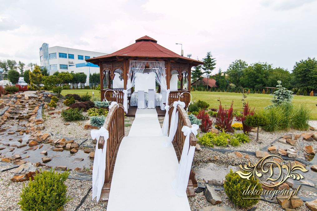 Przepiękna ceremonia śluby cywilnego w Rzeszowskiem Ziemowicie. Całość wykonana delikatnie dla cudownej Pary Młodej. Pod altaną specjalnie przygotowane miejsce do Pani Urzędnik wraz z najbardziej zainteresowanymi osobami.