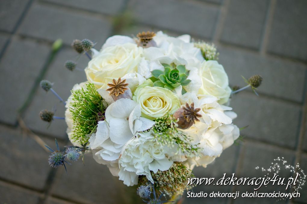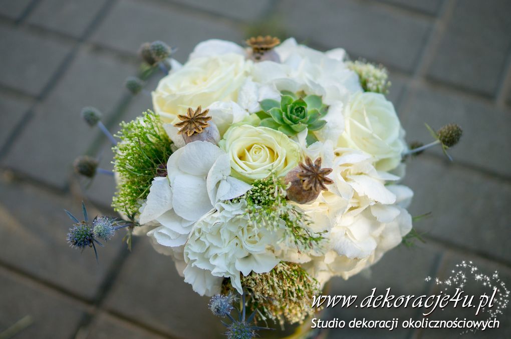 Ciekawe i nietypowe bukiety ślubne i bukiety dla drużek. Sukulenty, główki maków i ciekawe połączenie z kwiatami a to wszystko wykończone sznurkiem lnianym.