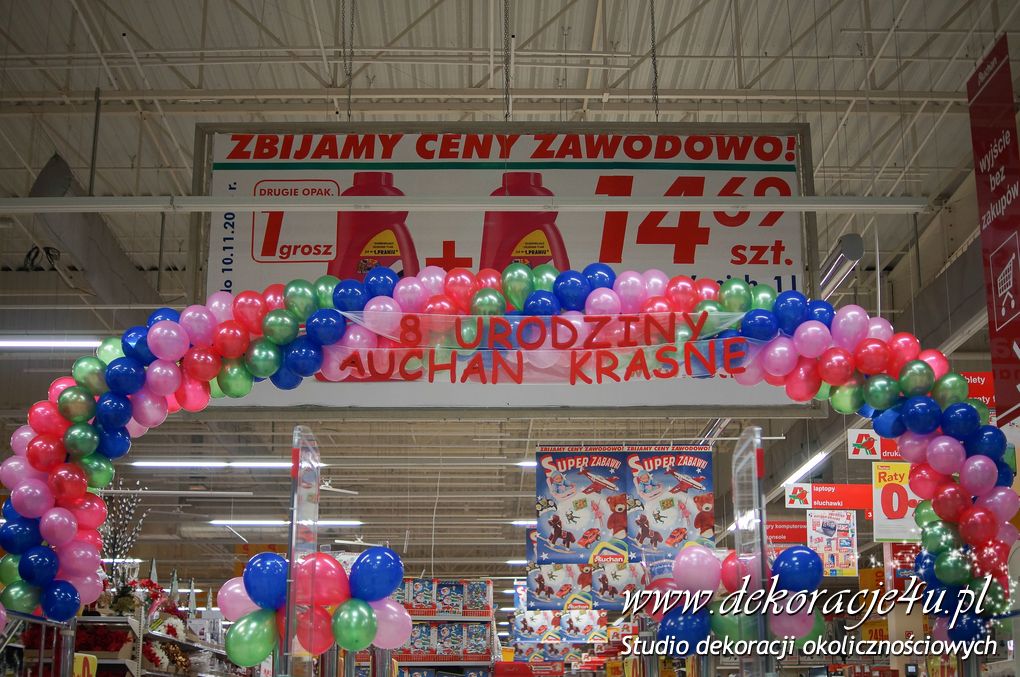 Urodziny tuż tuż - mieliśmy okazję dekorować wejście do sklapu AUCHAN KRASNE z okazji 8 urodzin tego właśnie sklepu. Bramy balonowe przed wejściami do sklepu pięknie sie komponowały z całą uroczystością urodzinową.